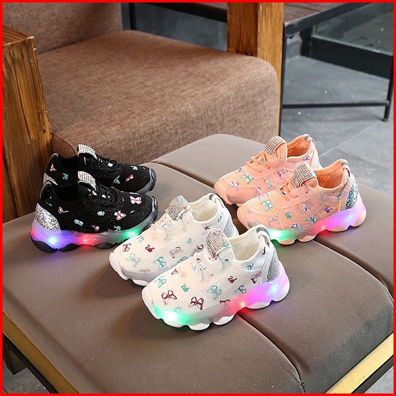 Promo 9.9 Lkm231 Sepatu Sport Anak Perempuan Casual Bayi Dengan Lampu Led Sekolah 1kg 3pc Little Kuma