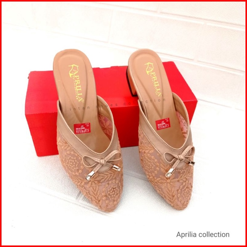 Sandal Bustong Brukat In-02 Aprilia Collection Sendal Brukat Wanita Terbaru Hak 3cm Samdal Hak Brukat Pesta Perempuan Re