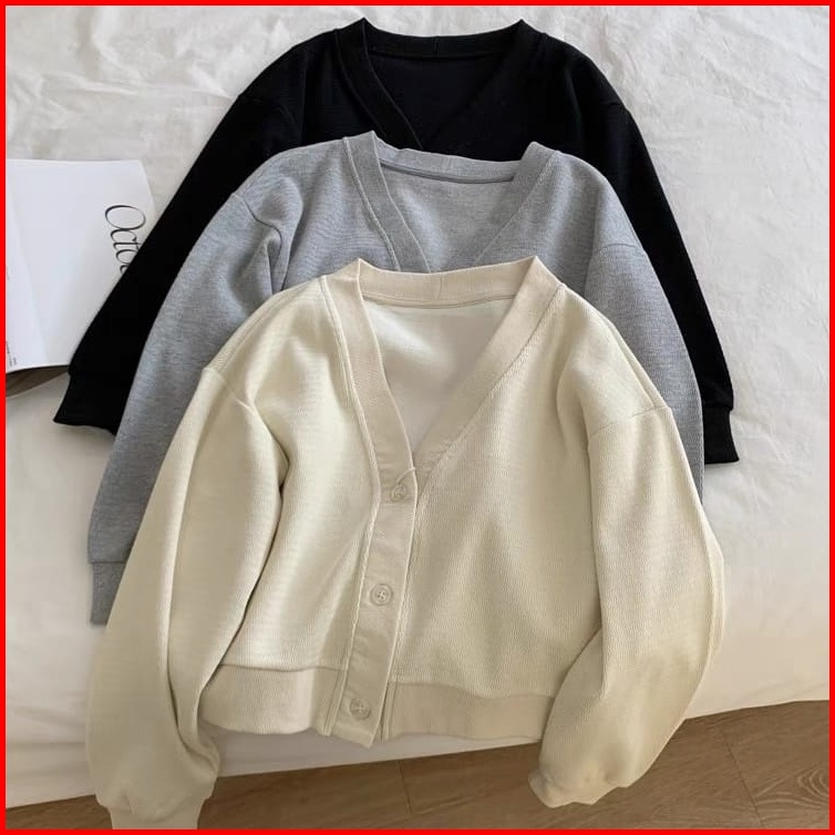 Cardigan Crop Lalisa K-pop Style Sweater Cropped Allsize Baju Wanita Bahan Fleece Tebal Dan Lembut