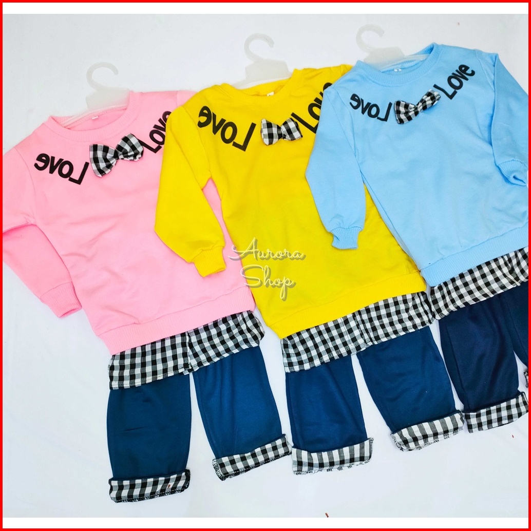 Aurora Shop - Set Plaid Love Baju Anak Cewek Usia 1-5 Tahun