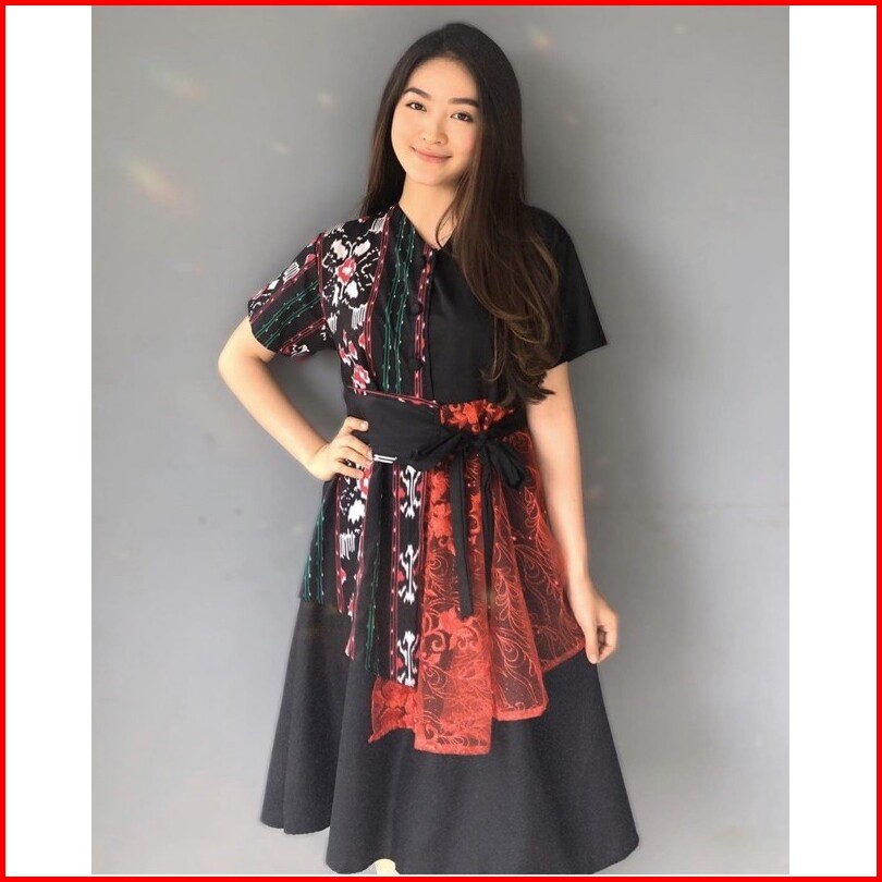Keishan.id - Dress Tile Mutiara Motif Andin Baju Natal Kondangan Hariraya Mewah Brokat Tile Party Galadinner Tunangan