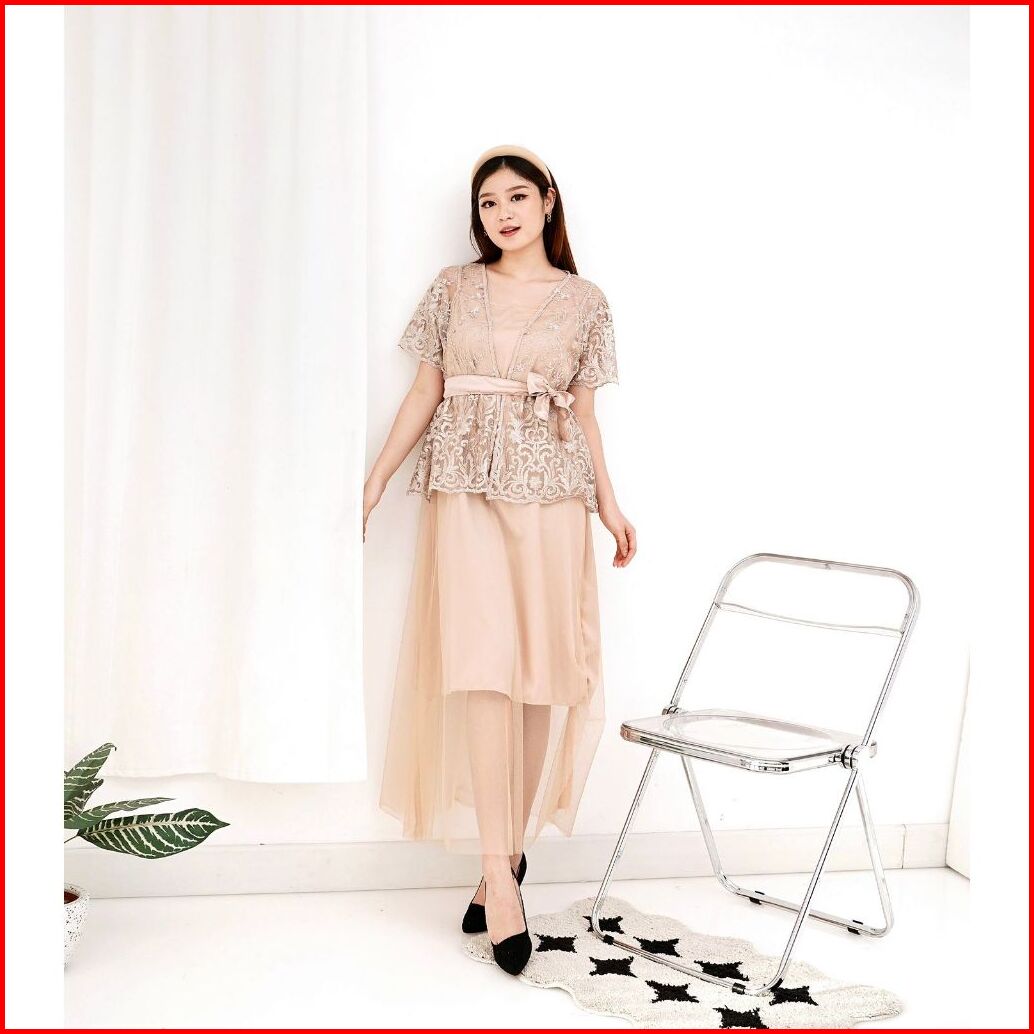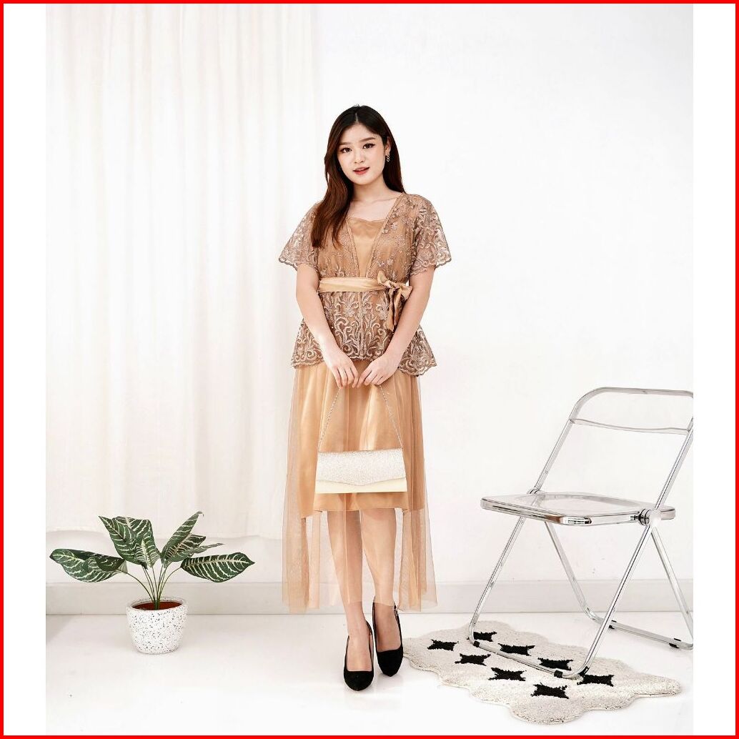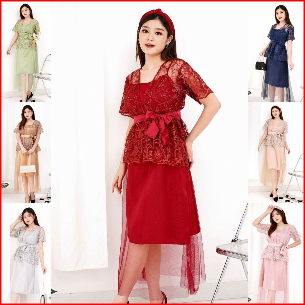 Jamin Realpict 2in1 Dress Gracia Tile Premium Inner Outer Dres Brukat Pesta Tile Bordir Dress Kondangan Dress Natal Dres