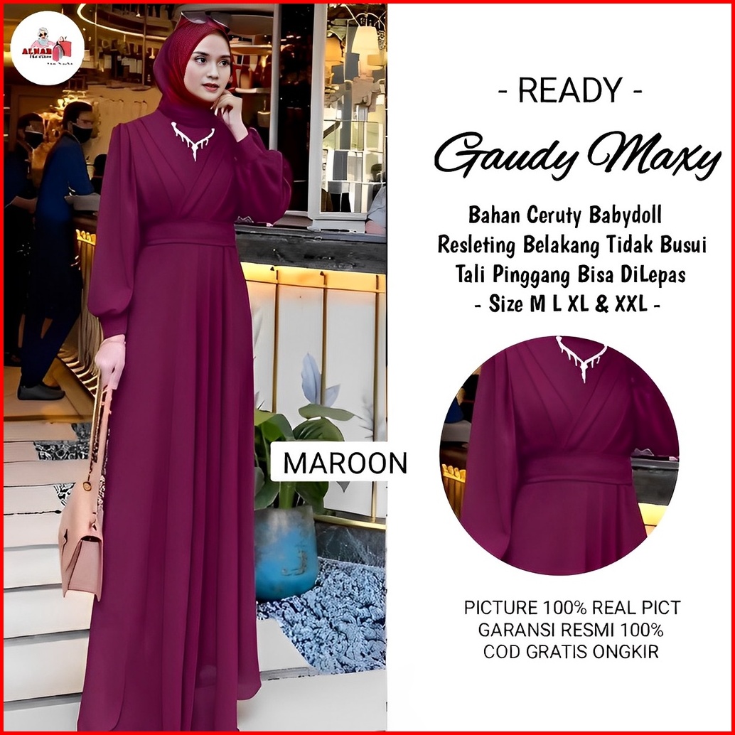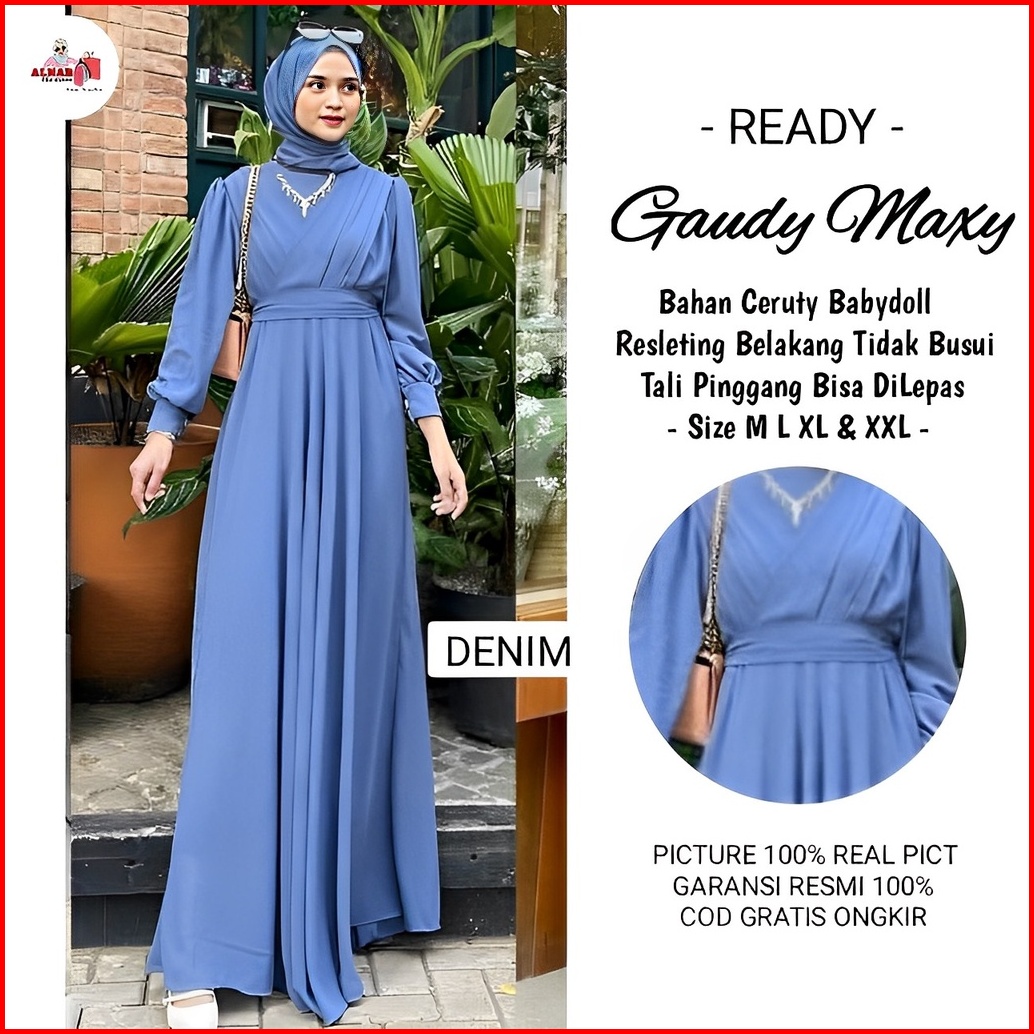 Dress Kondangan Wanita Muslim Polos Panjang Blue Denim Bahan Ceruty Babydoll Full Furing M L Xl Xxl Warna Hitam Putih