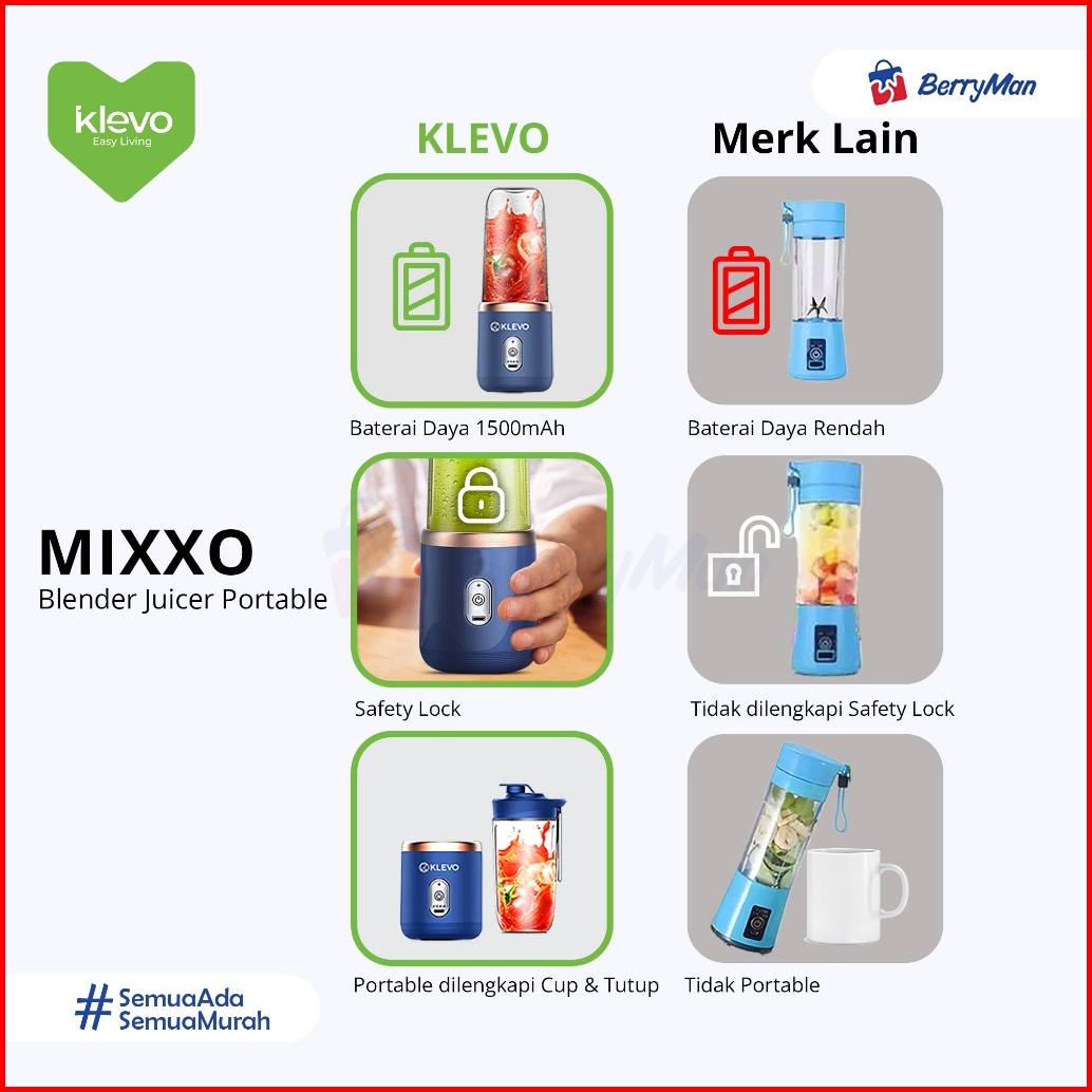 Klevo Mixxo Blender Juicer Portable 6 Mata Pisau Juice Cup Mini 400ml