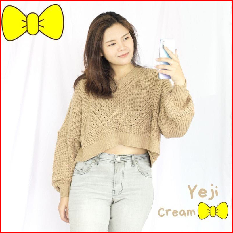 Hanna Sweater Crop Top Sido Bolong Nara Knit Oversized Sweater Rajut Tebal Lengan Panjang