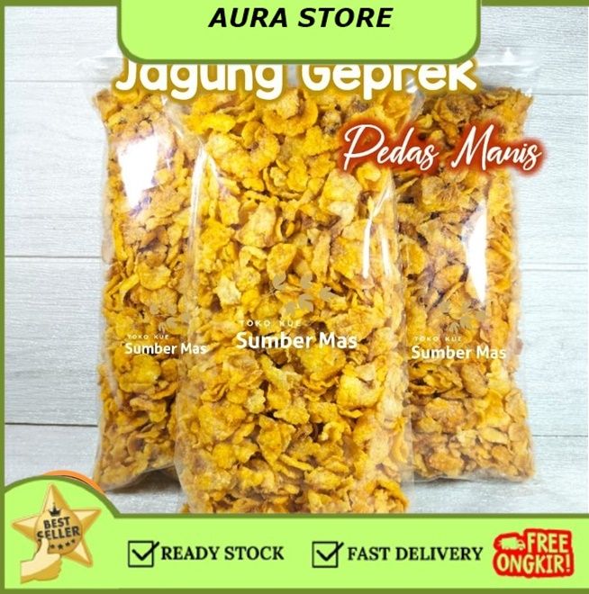 JAGUNG GEPREK 250gr / RASA PEDAS MANIS / Emping Jagung / Cemilan / Snack kiloan / Kue kering