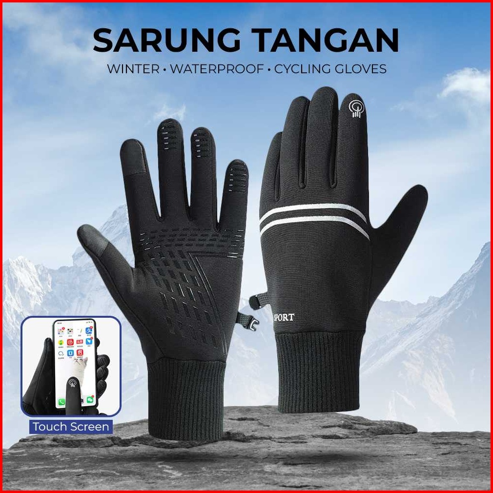 Sarung Tangan Sepeda Motor Olahraga Outdoor Touch Screen Winter Waterproof Cycling Gloves Sepasang 2pcs