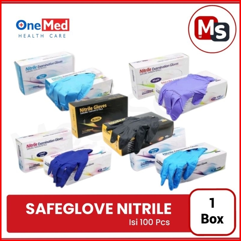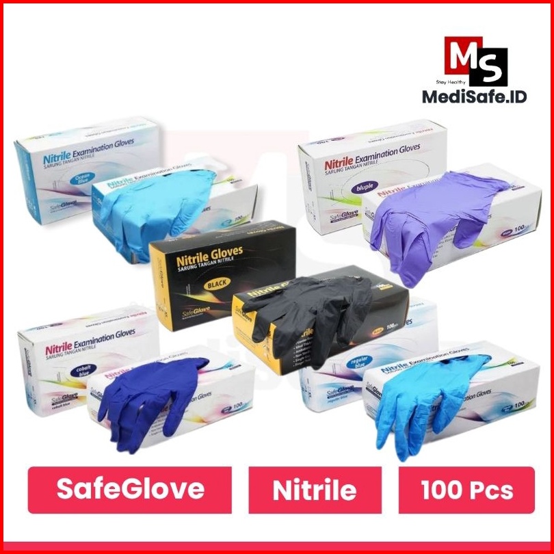 Sarung Tangan Nitrile Safeglove Handscon Nitril Tanpa Bedak Isi 100 Pcs