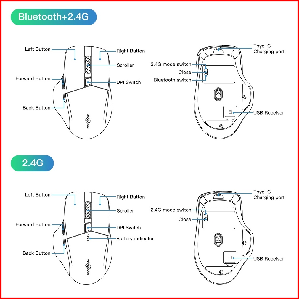Goojodoq Wireless Mouse 4000dpi Usb Computer 2.4ghz Mouse Ergonomic Scrolling Battery Display Bluetooth Mouse