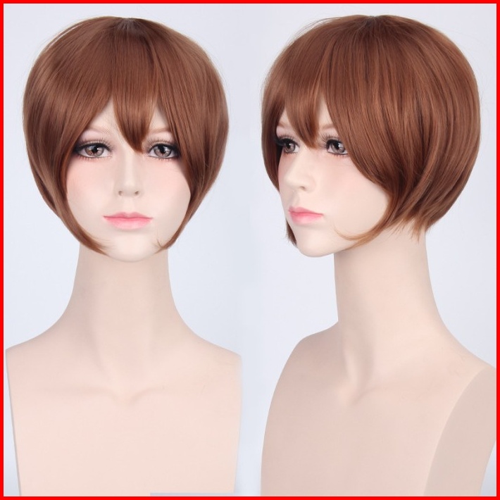 K047 Wig Base Cowok Pendek Cosplay Rambut Palsu 30 Cm Hitam Abu Gray Brown Daily Lolita