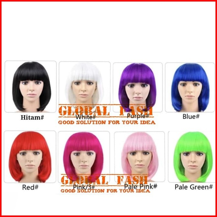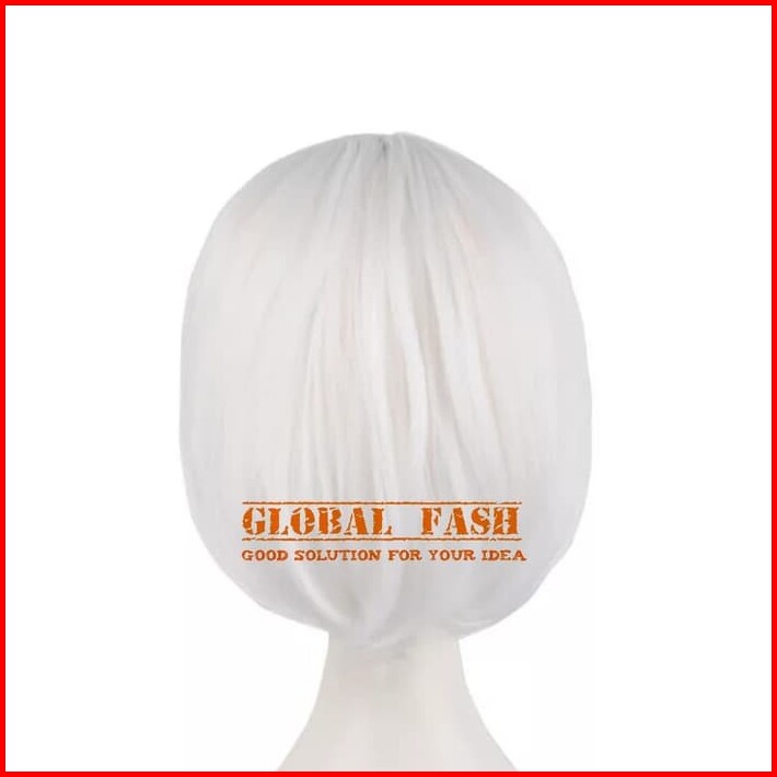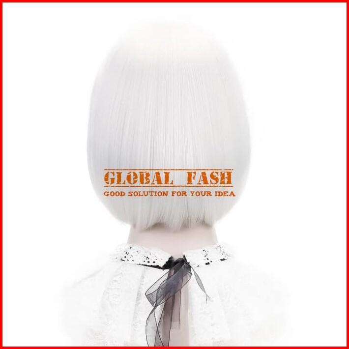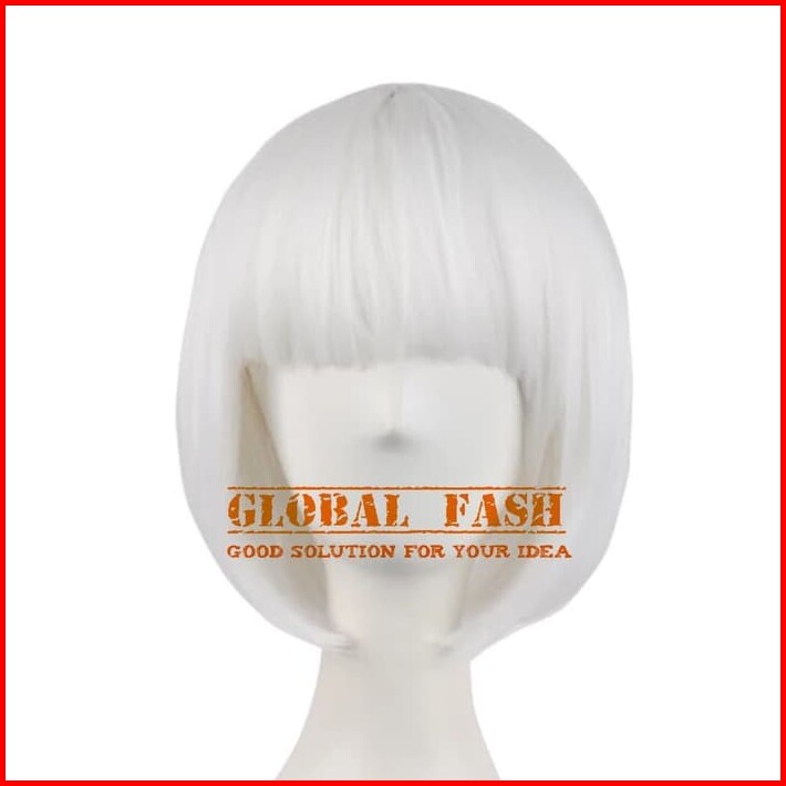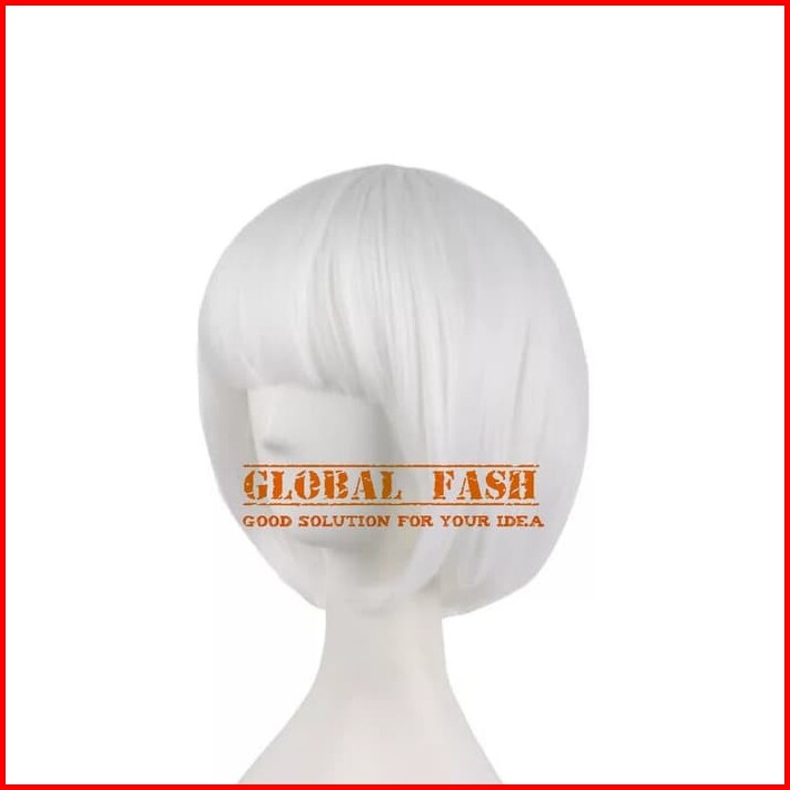 Wig Bob Putih Wig Pendek Lurus Wig Cosplay Rambut Palsu Full Wig Lurus Pendek Wig Poni