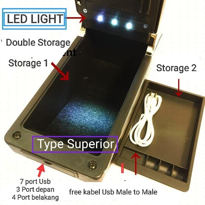 TOYOTA CALYA ARMREST USB LED 7 PORT