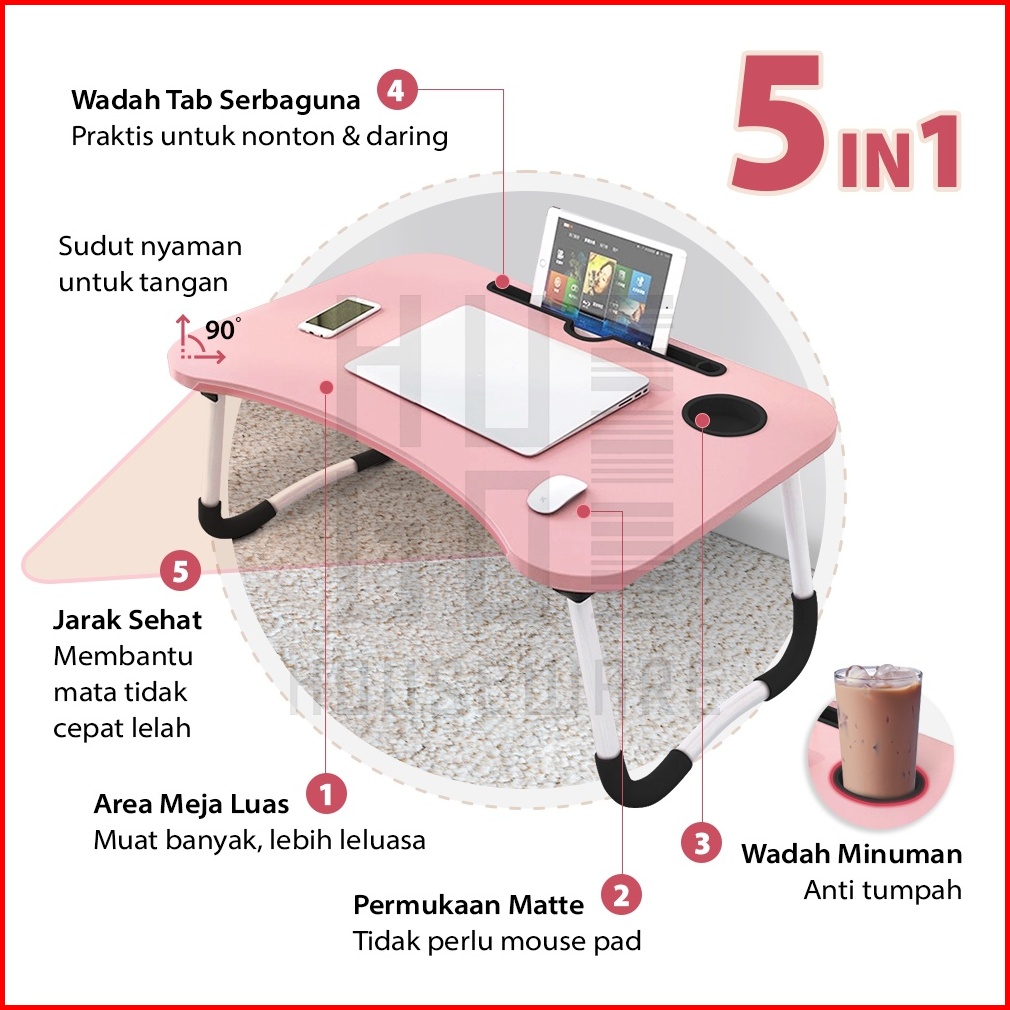 Hugo Meja Lipat Portable Meja Laptop Meja Belajar Anak