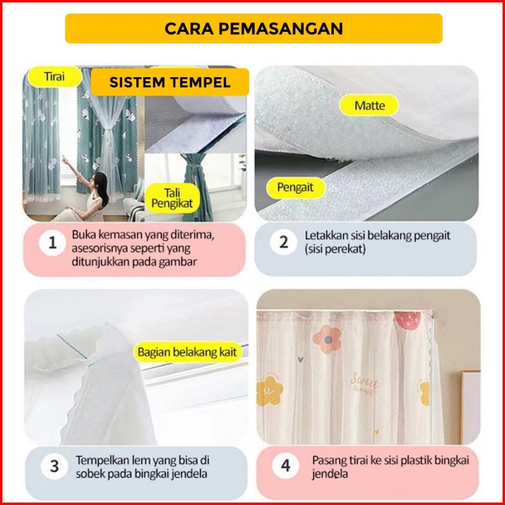 Tirai Gorden Korden Hordeng Pintu Jendela Tempel Tanpa Bor Paku