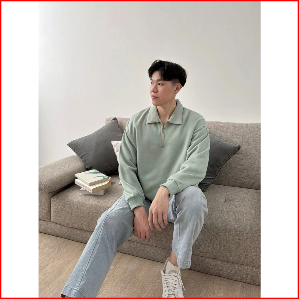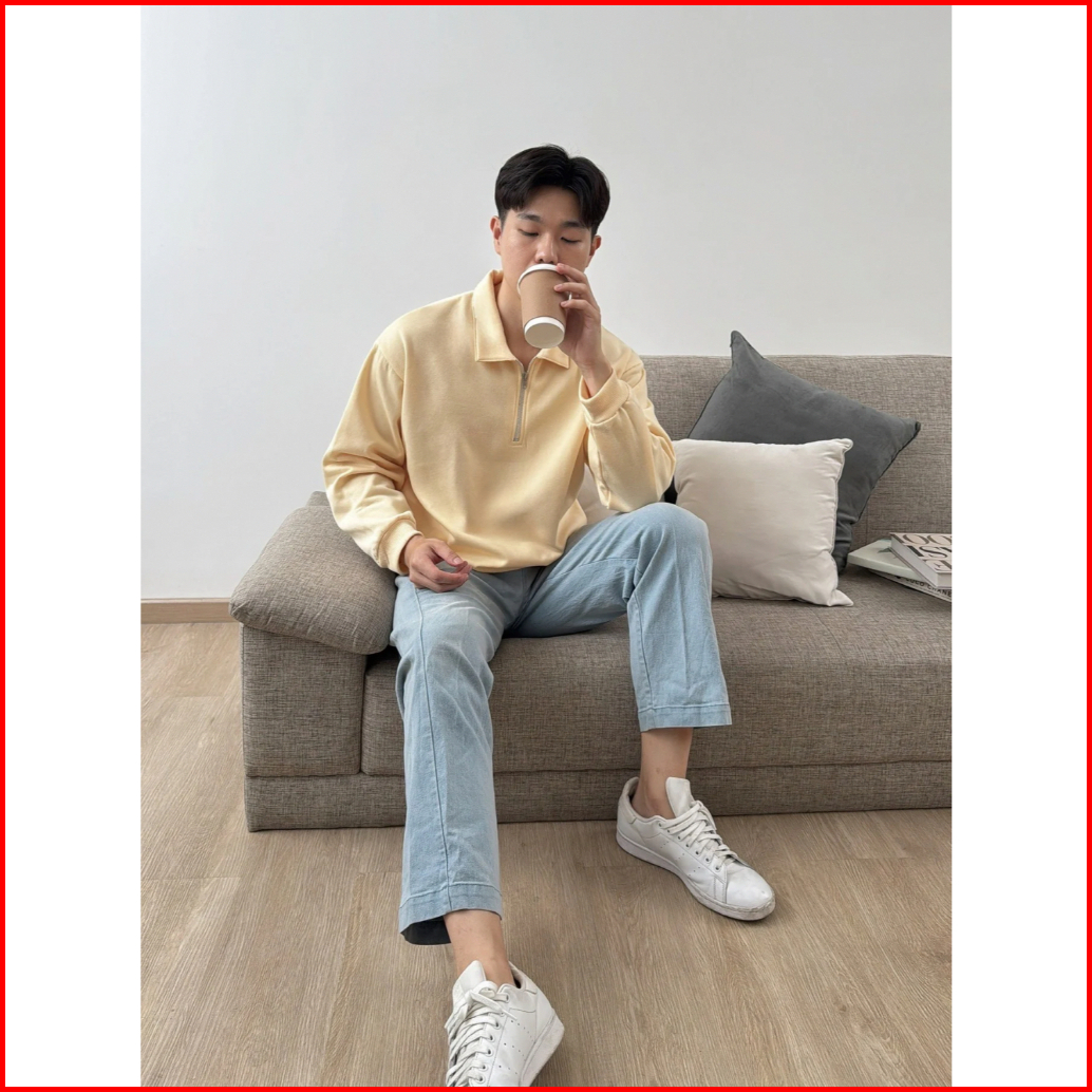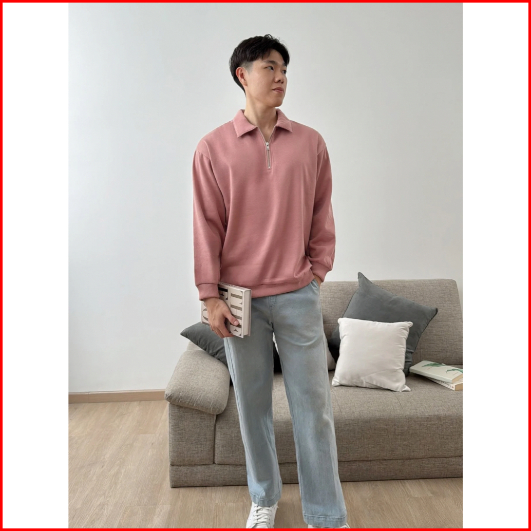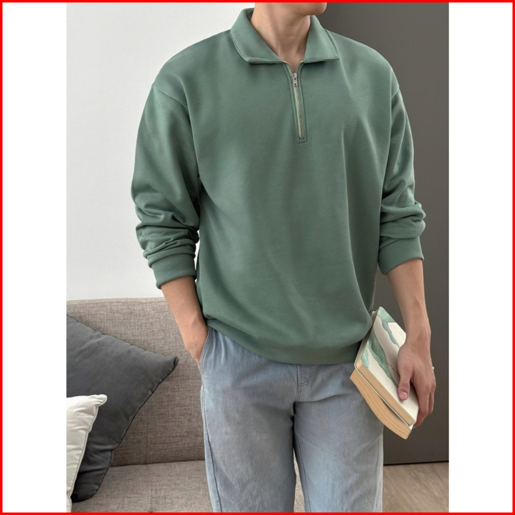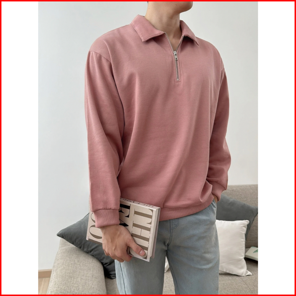 Kadaka Mo-0107 Sweater Pria Fleece Atasan Tangan Panjang Detail Kerah