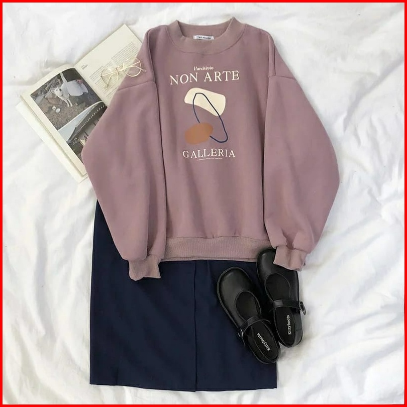 Non Arte Galleria Sweater Wanita - Sweater Oversize Crewneck Oblong Sweater Basic