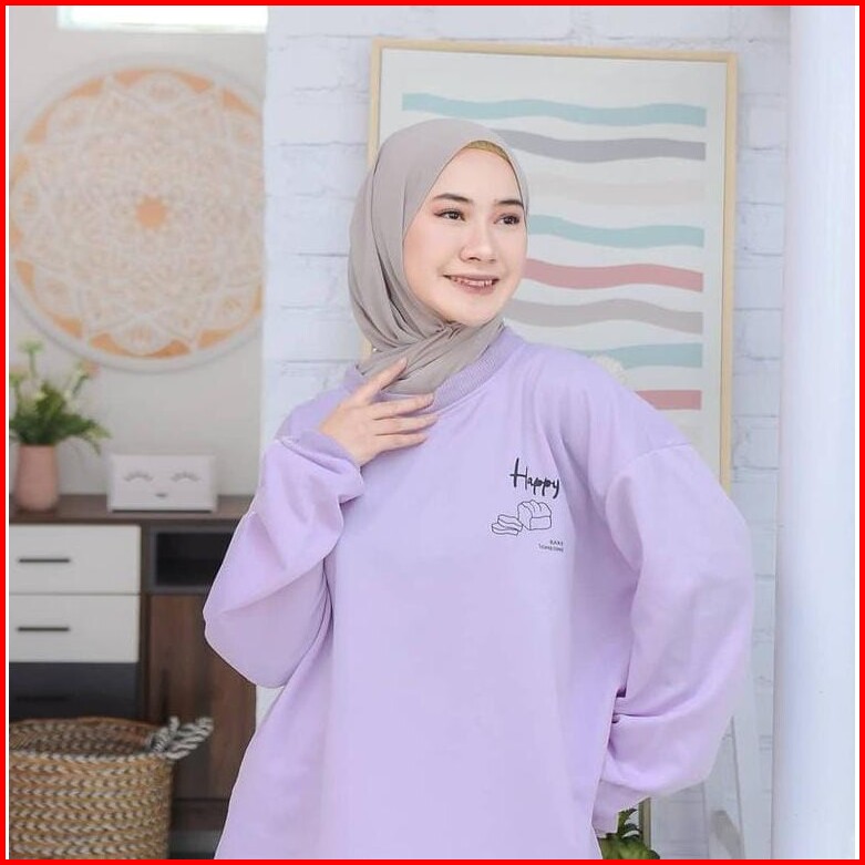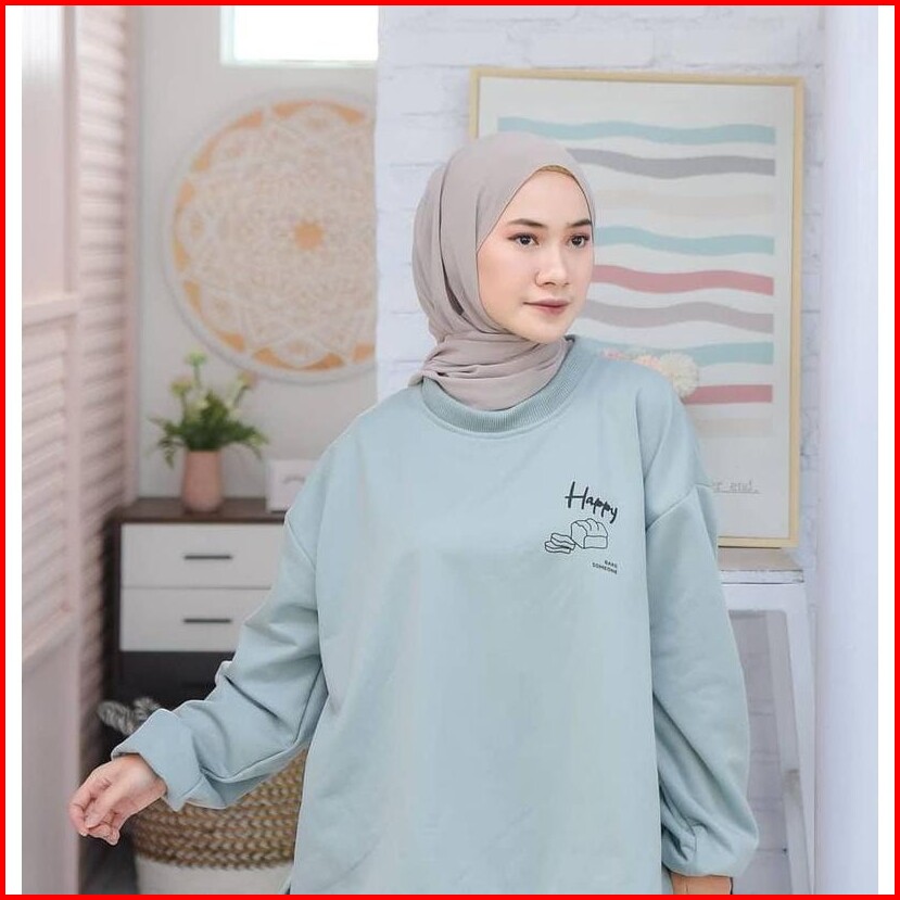 Sweater Wanita Happy Bake Bordir Atasan Wanita Bordir Lucu Crewneck Fleece Premium Tebal Terbaru