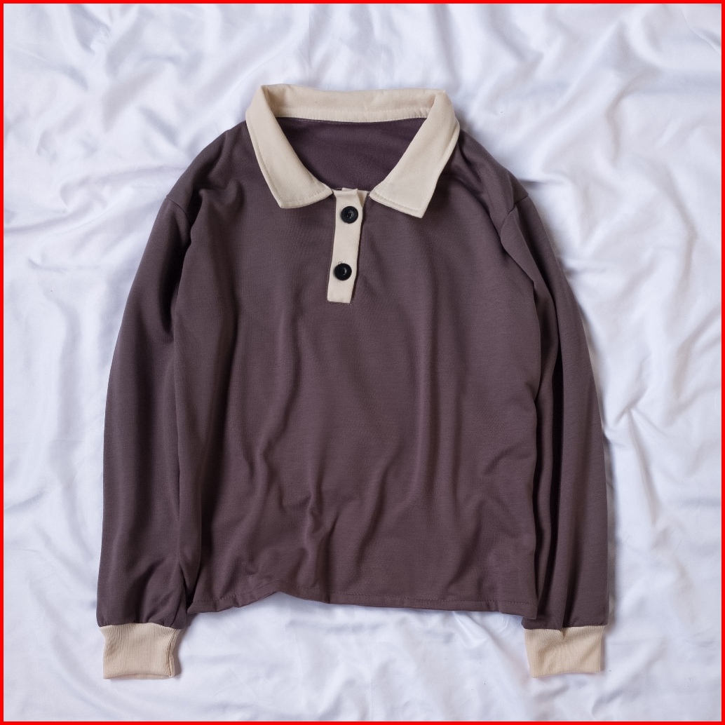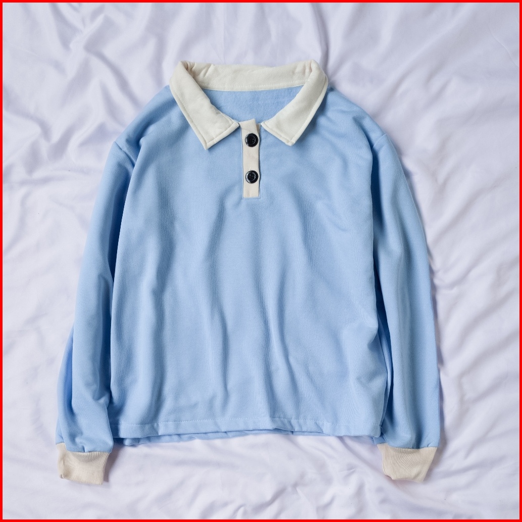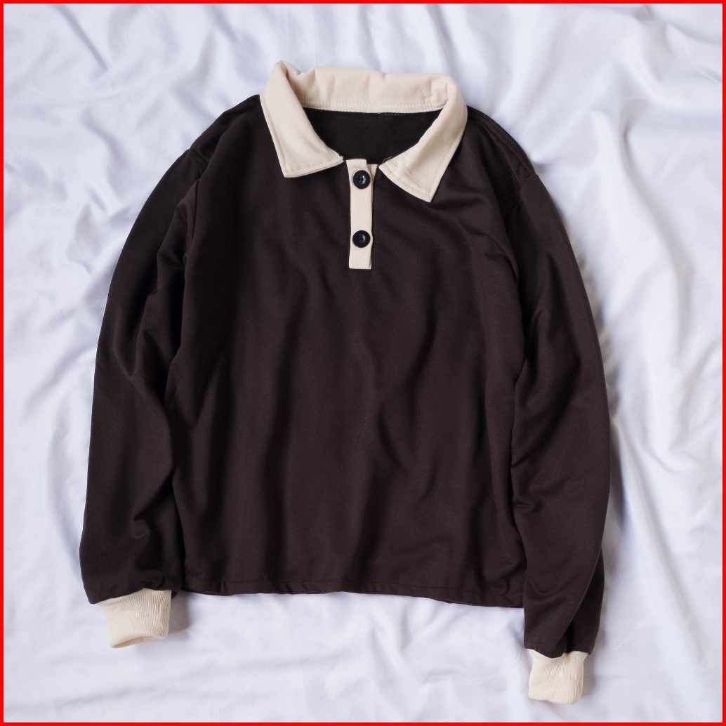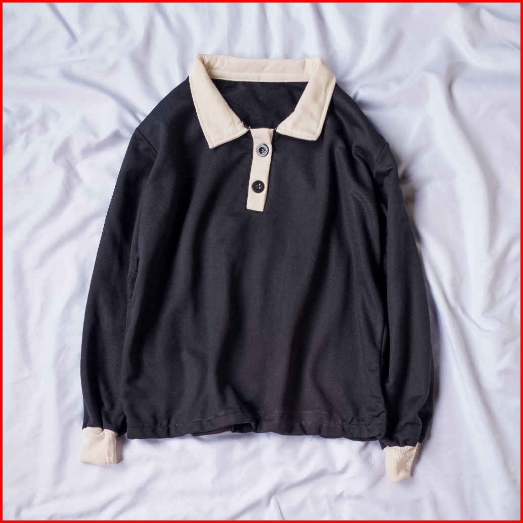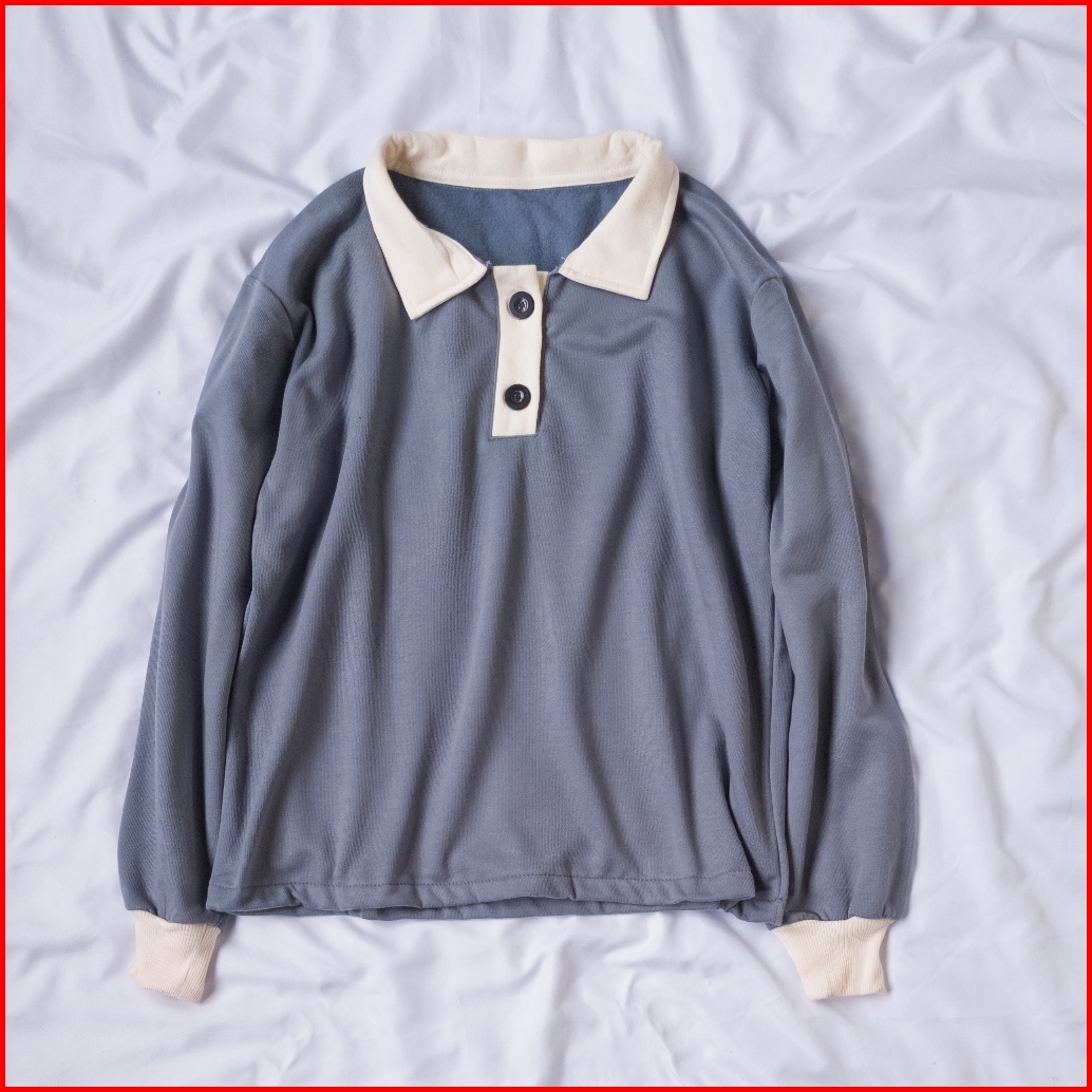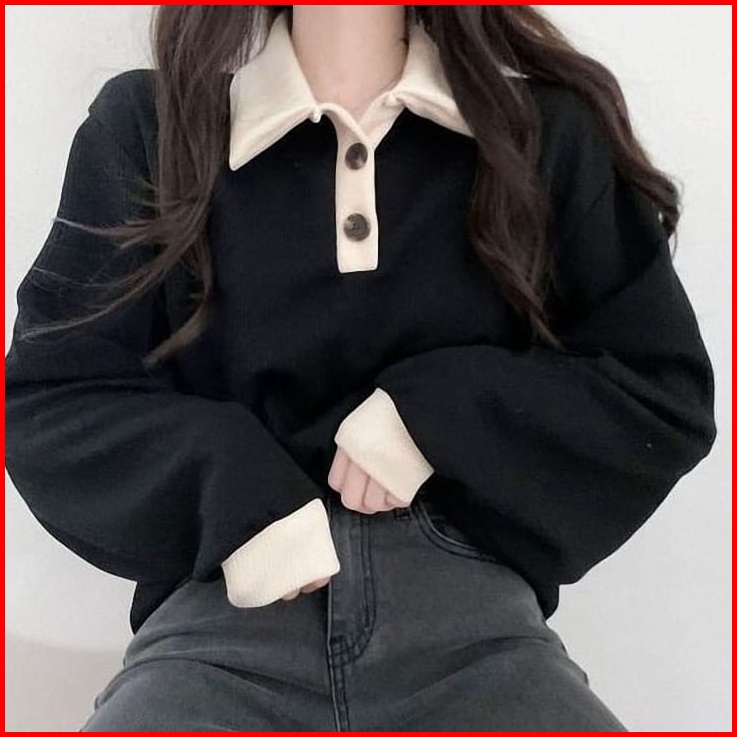 Sweater Wanita Collar Girl Korean Style Colar Sweatshirt Sweater Kerah Dengan Kancing Polos Button Jane Fashion Allsize