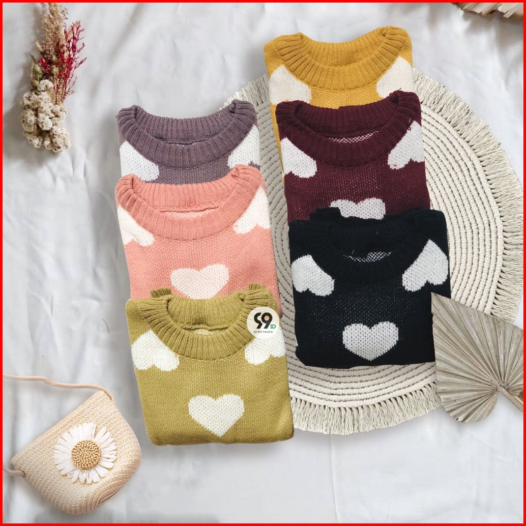 Sweater Rajut Premium Anak Perempuan Blouse Motif Love Usia 1-6 Tahun