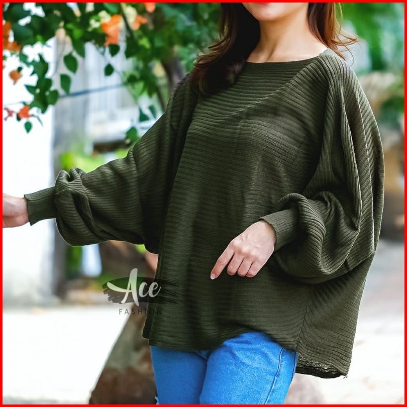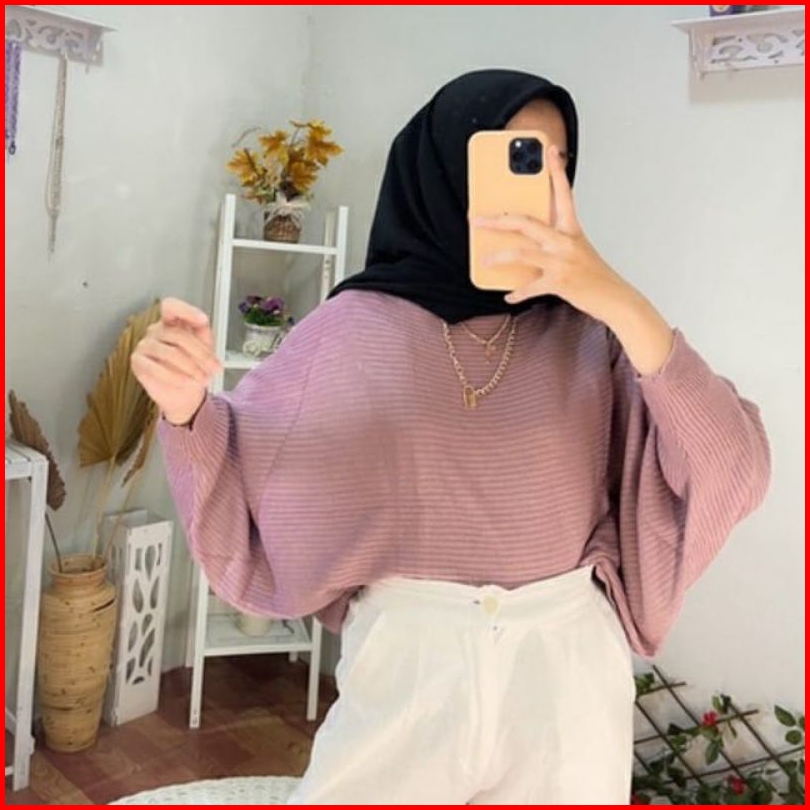 Blouse Baju Rajut Batwing Atasan Blouse Wanita Baju Wanita Rajut Tebal Sweater Model Kelelawar