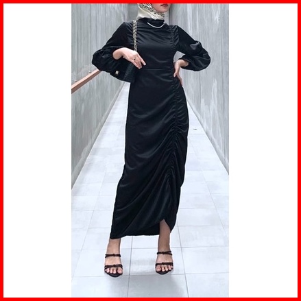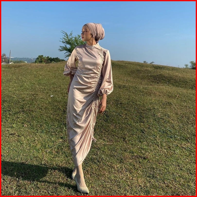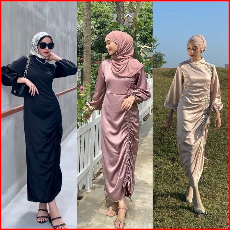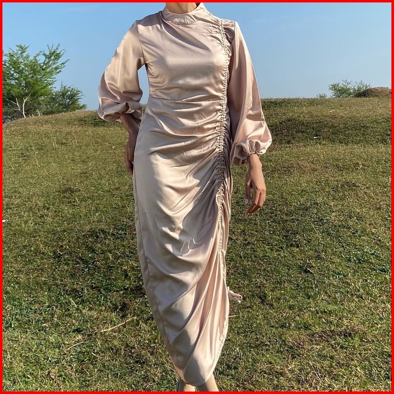 Andini Dress Ready Stok Silk Dress Pemium Velvet Satin Dress Gaun Bridesmaids Dress Serut Silk Simple Kekinian Maxmara D