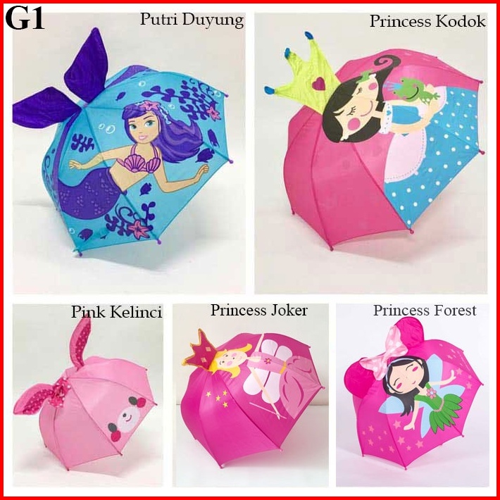 Luluaquatic Payung Anak Kuping Jumbo Karakter Princess Dan Animal