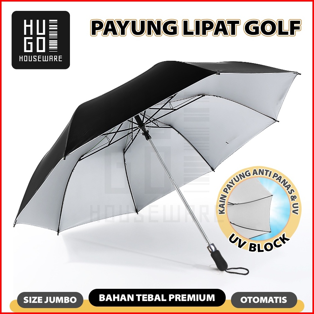 Payung Lipat Golf Besar Mewah Jumbo Otomatis Polos Lipat Dua Hugo