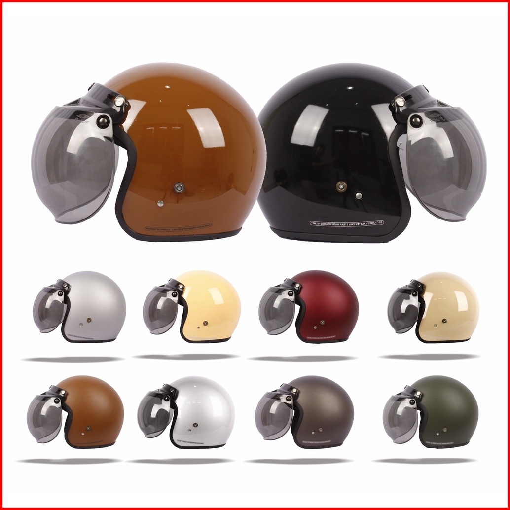 Helm Bogo Dewasa Retro Full Leher Polos Kaca Datar Flat Injak Sni Sks