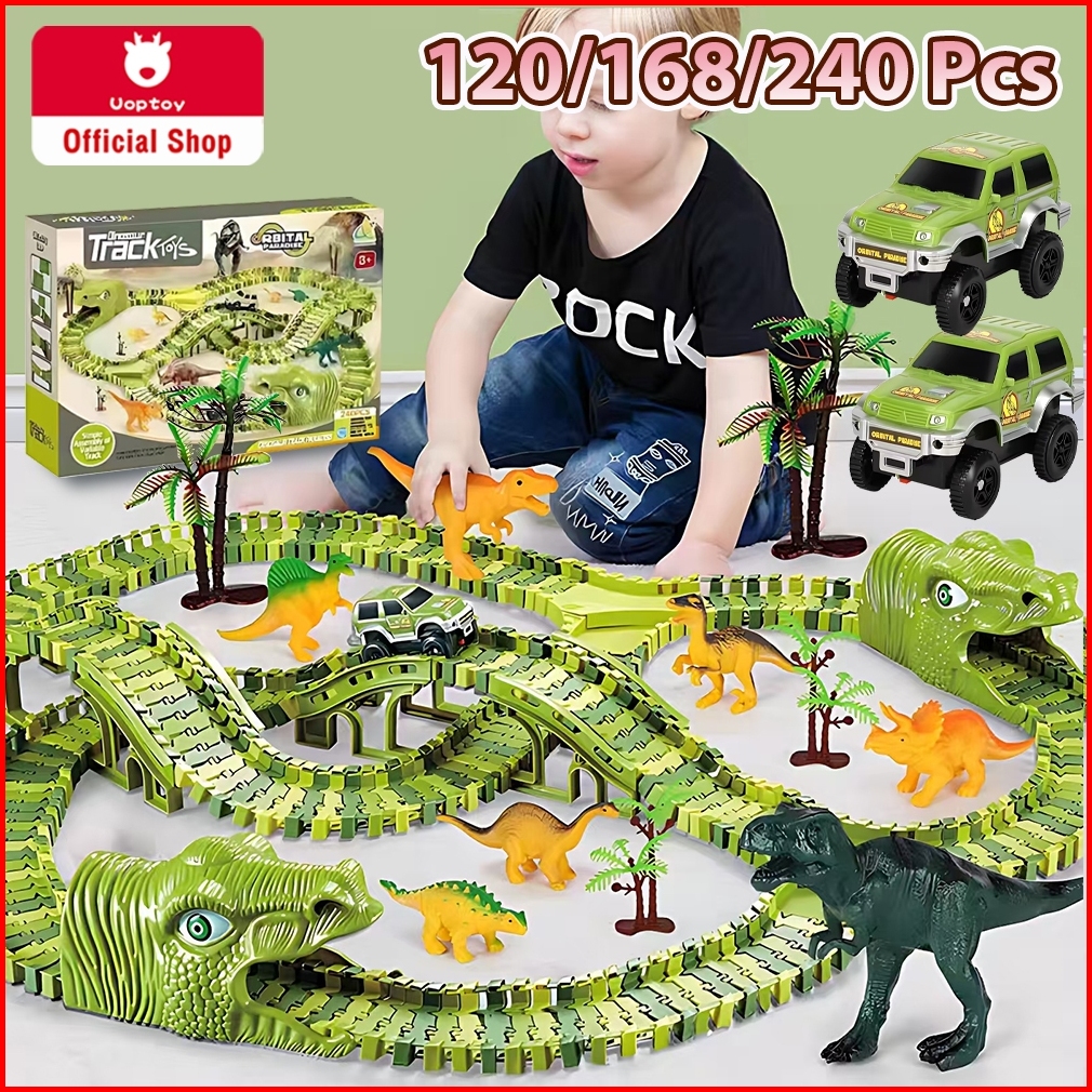 Uoptoy Dinosaurus Rel Mobil 240 168pcs Buah Rel Mobil Mainan Rel Pendidikan Mainan Rel Mobil Anak Hadiah