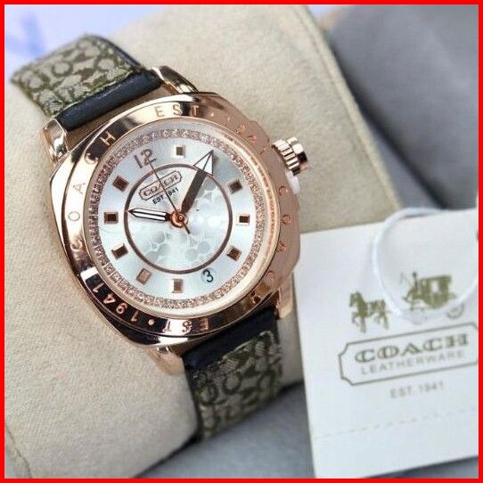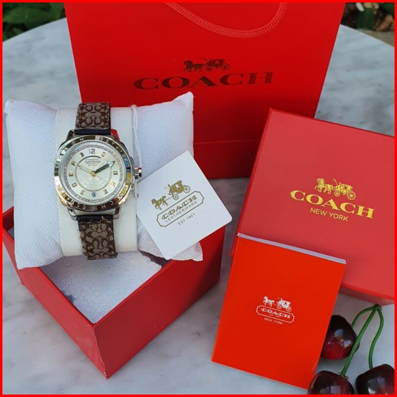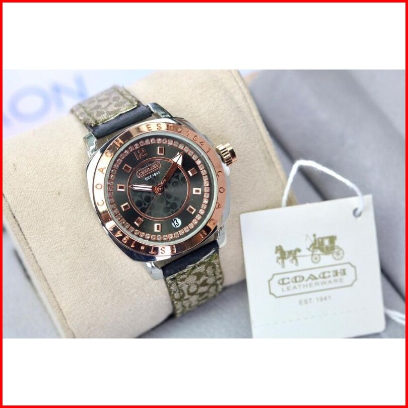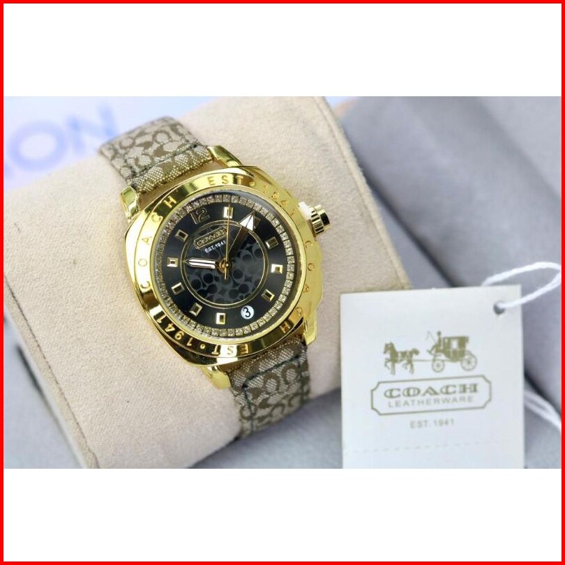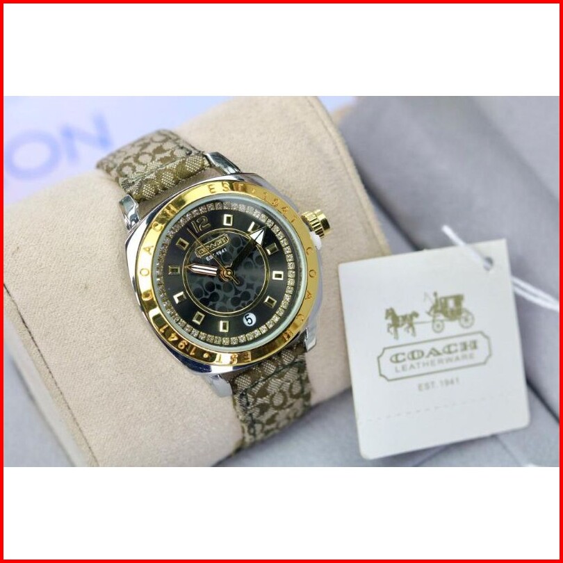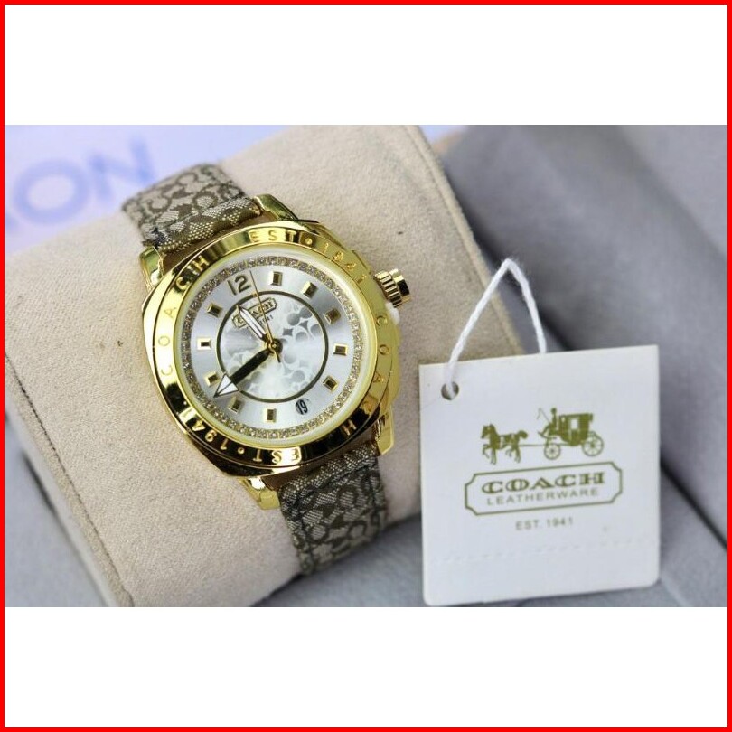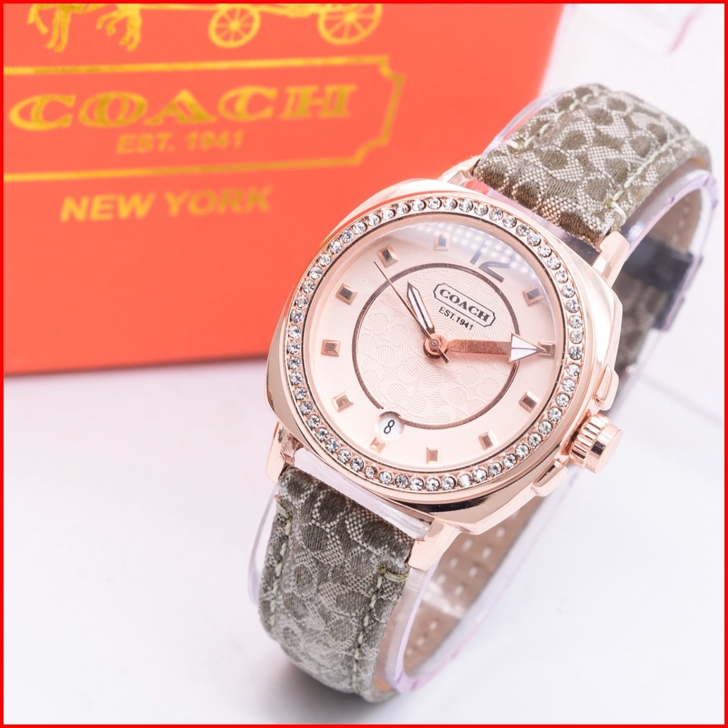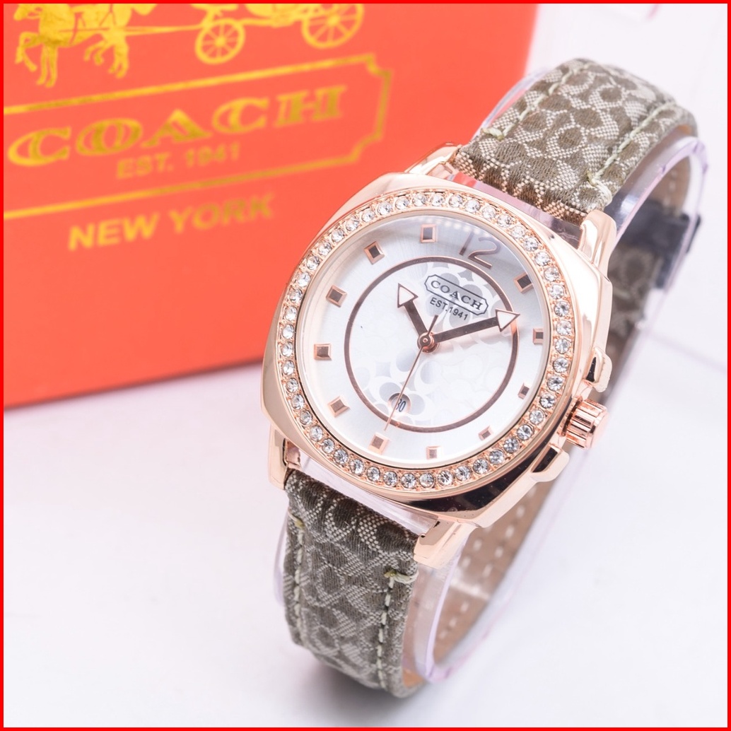 Jam Tangan Coach Wanita Kulit Premium Plat Diamond Diameter 3.5cm Jam Tangan Fashion Wanita Murah