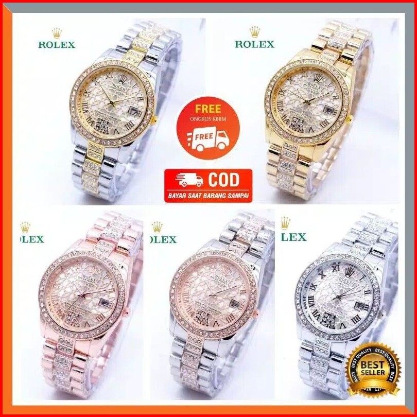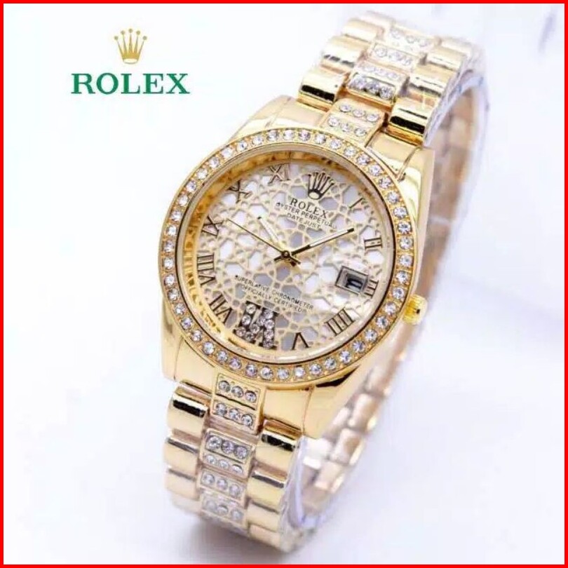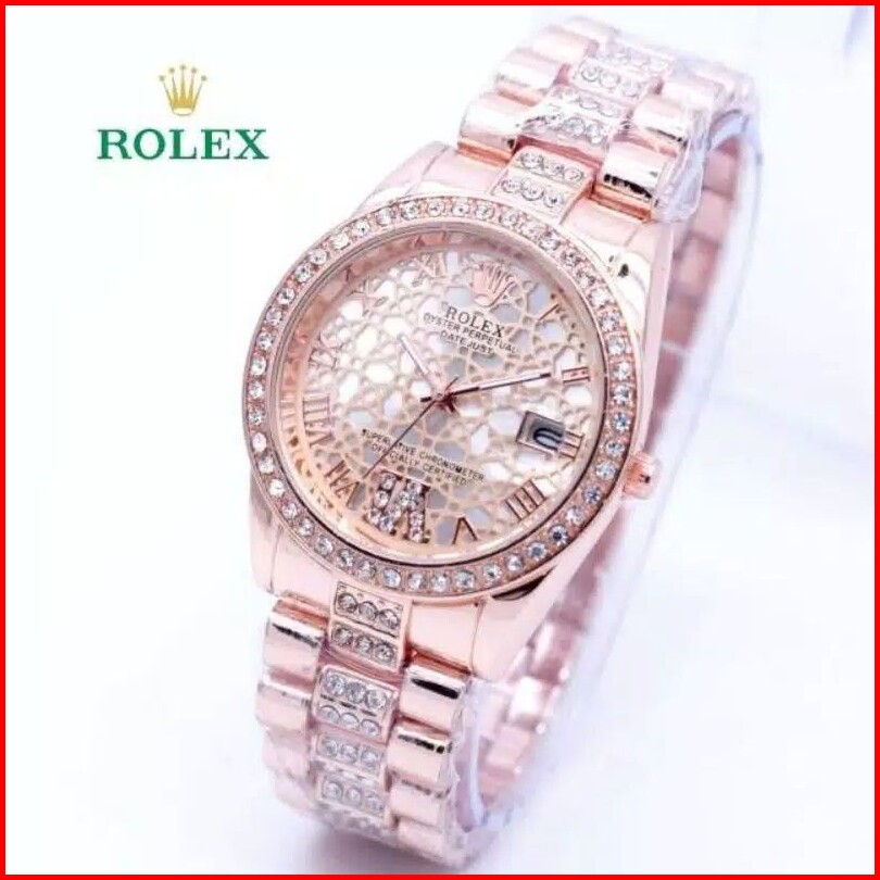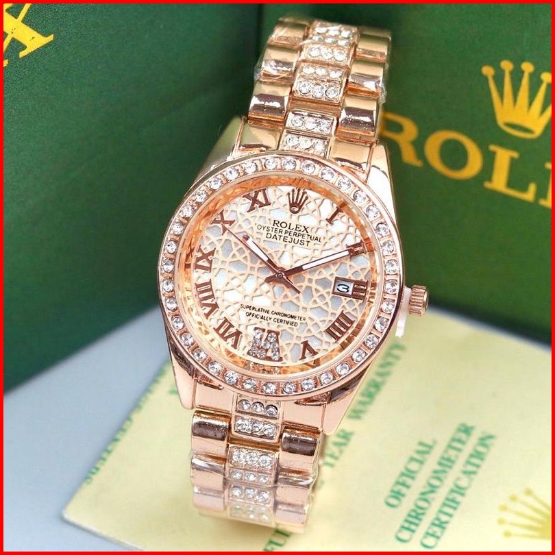 Terlaris - Jam Tangan Fashion Wanita Rolex Madu Tanggal Aktif Model Rantai Elegan