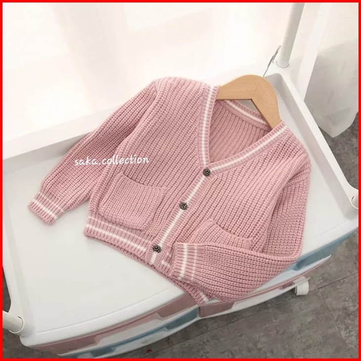 Cardygan Sweater Lis Tangan Rajut Anak Usia 4-12 Tahun Atasan Anak Fashion Anak Pakaian Anak Perempuan