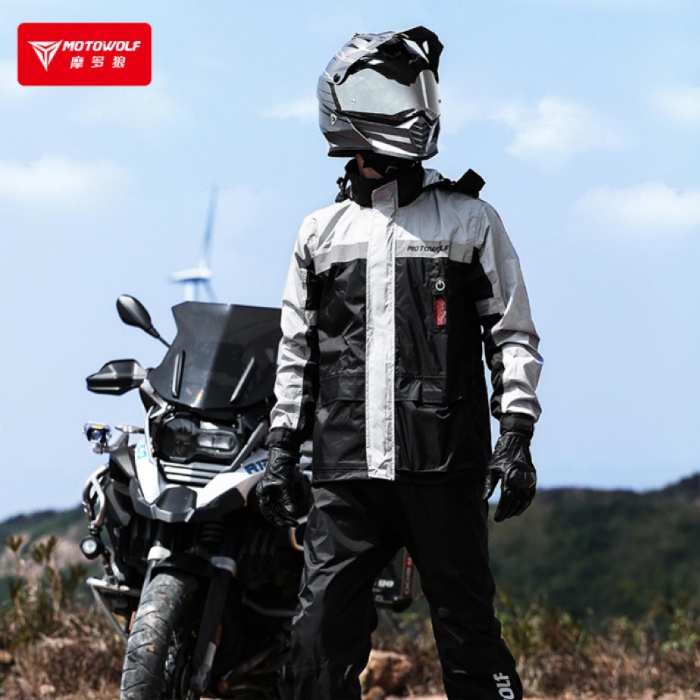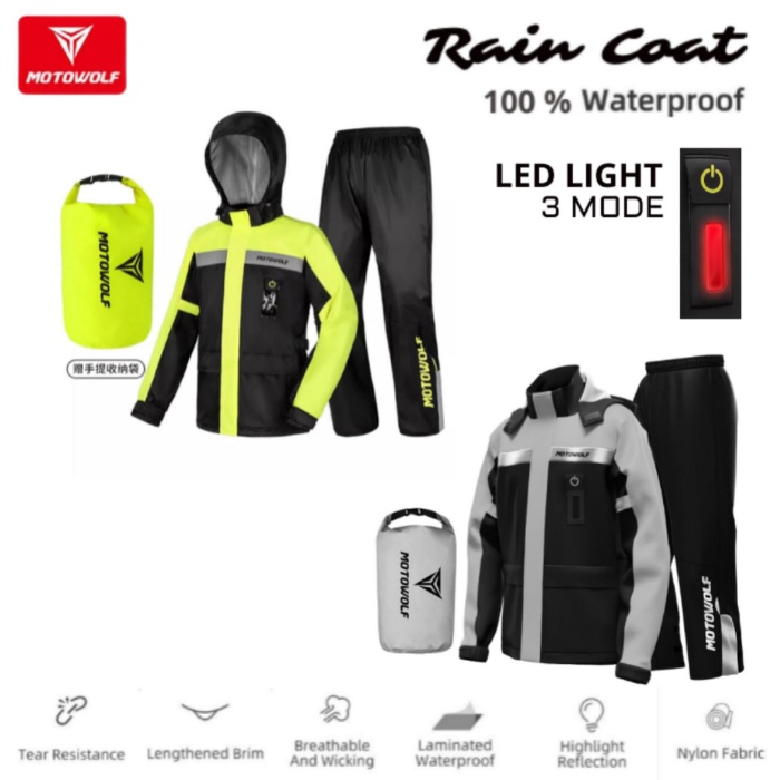 MOTOWOLF JAS HUJAN PONCO JAS HUJAN WATERPROOF PLUS LAMPU LED ORIGINAL