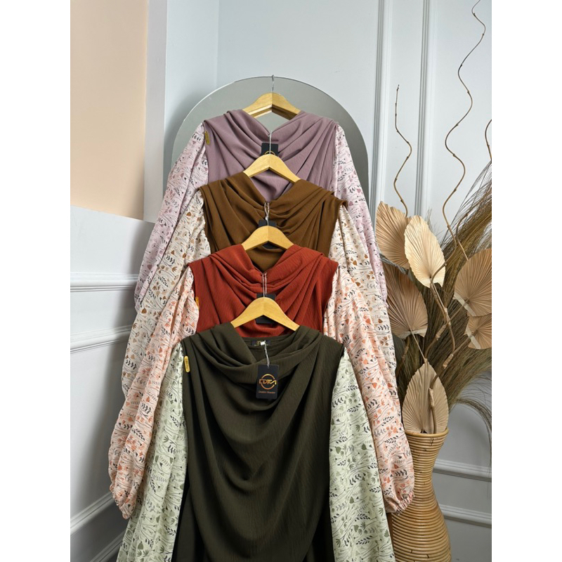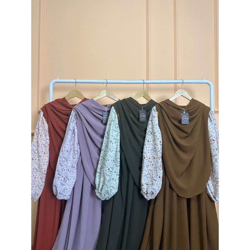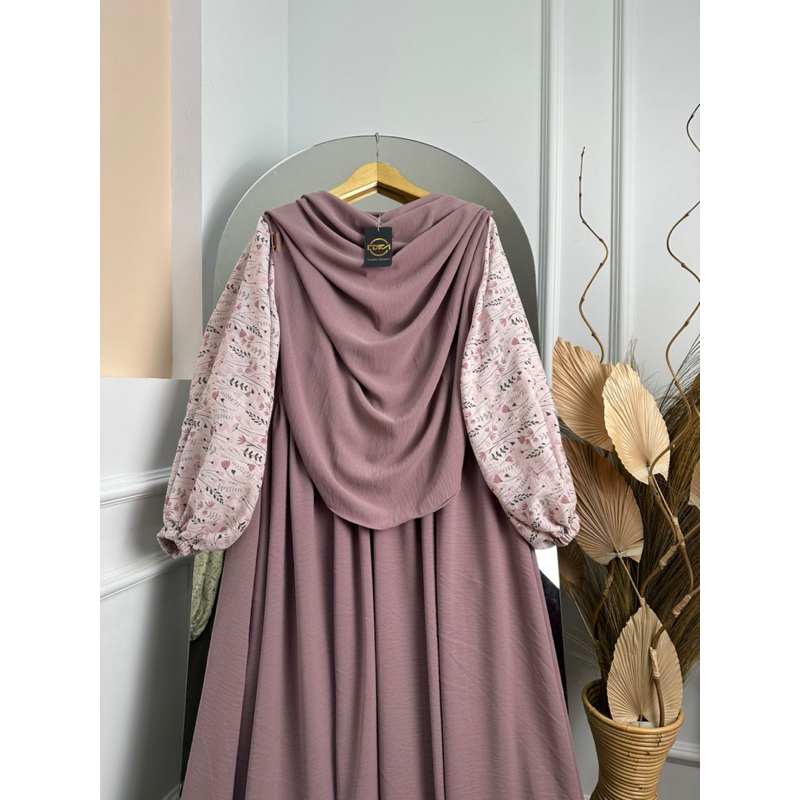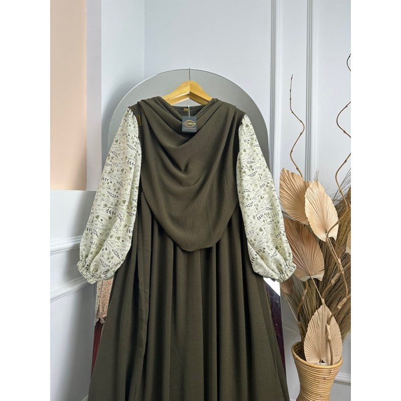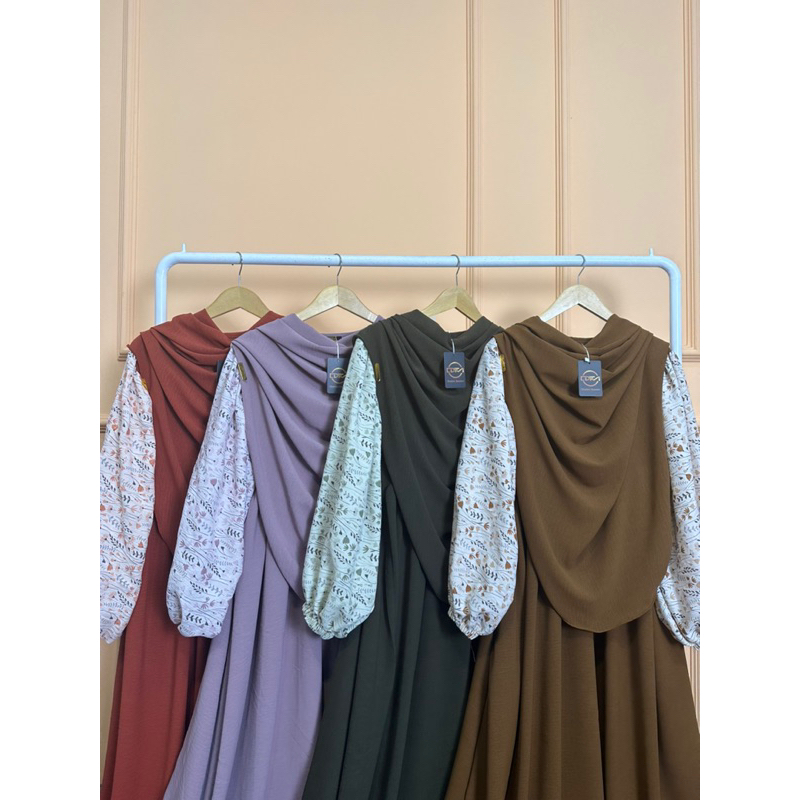 HAURA SET MOTIP SYAR’I PASMINA OVAL GAMIS SYAR’I WANITA BAHAN CRINKLE AIRFLOW