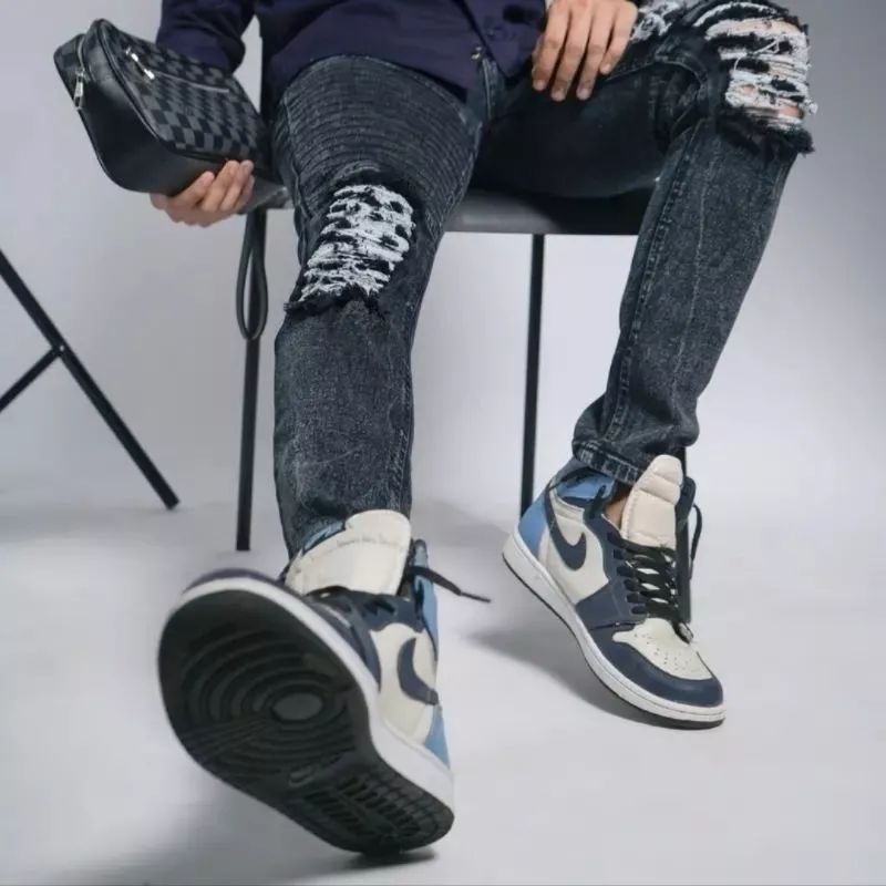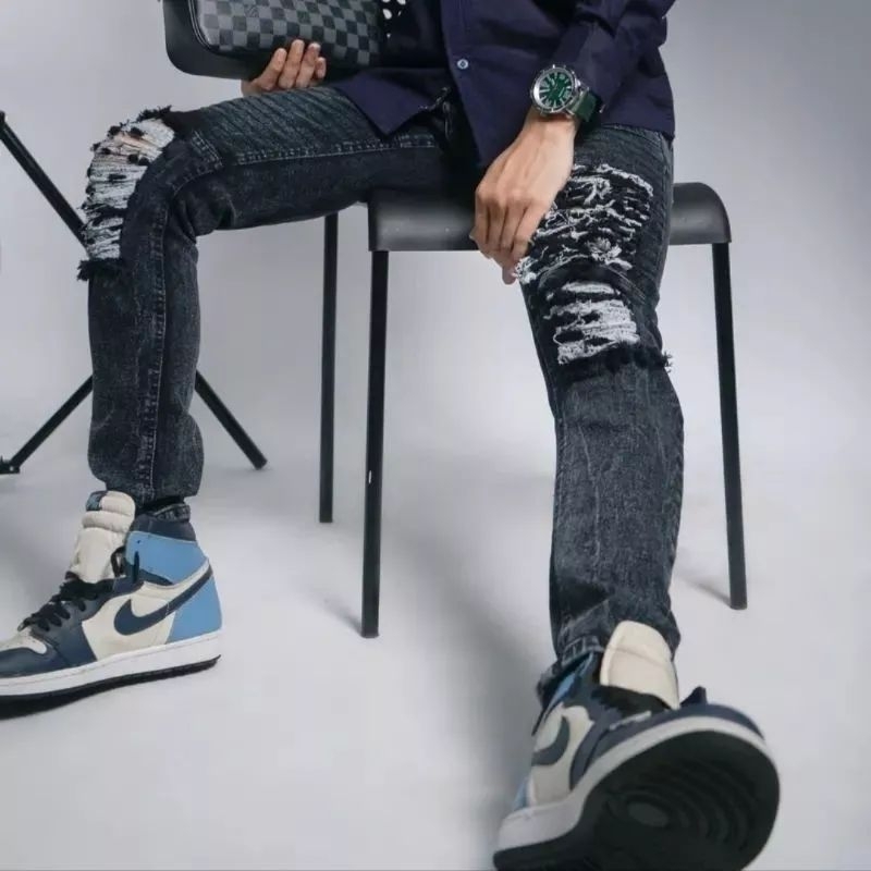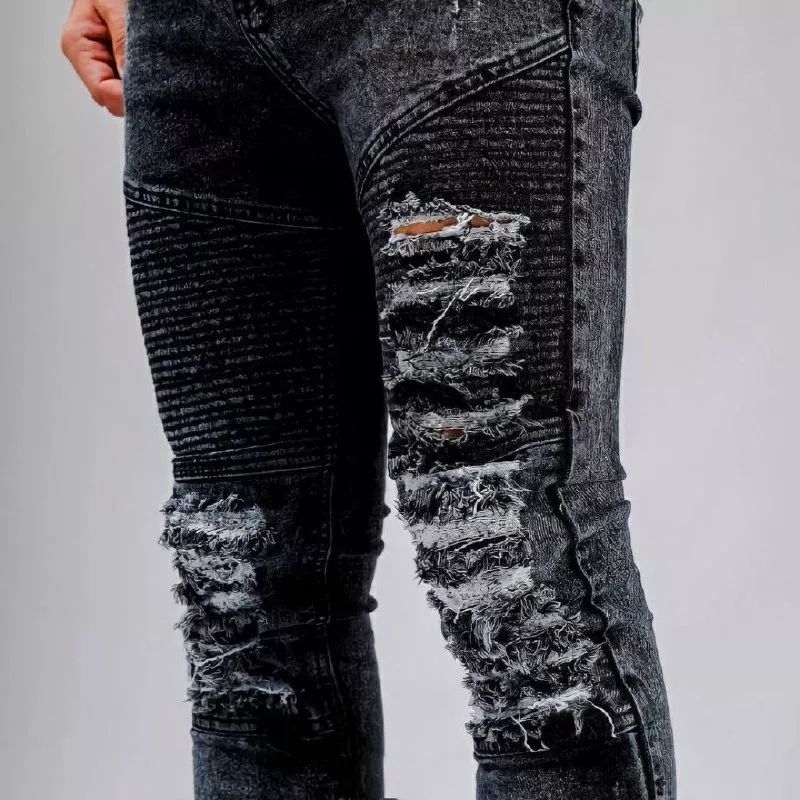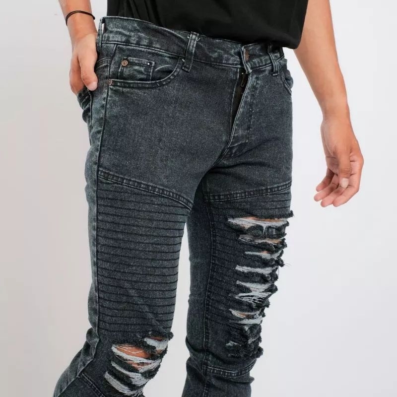 SKINNY JEANS BIKERS PRIA SOBEK - CELANA PANJANG BIKERS PRIA SOBEK LUTUT