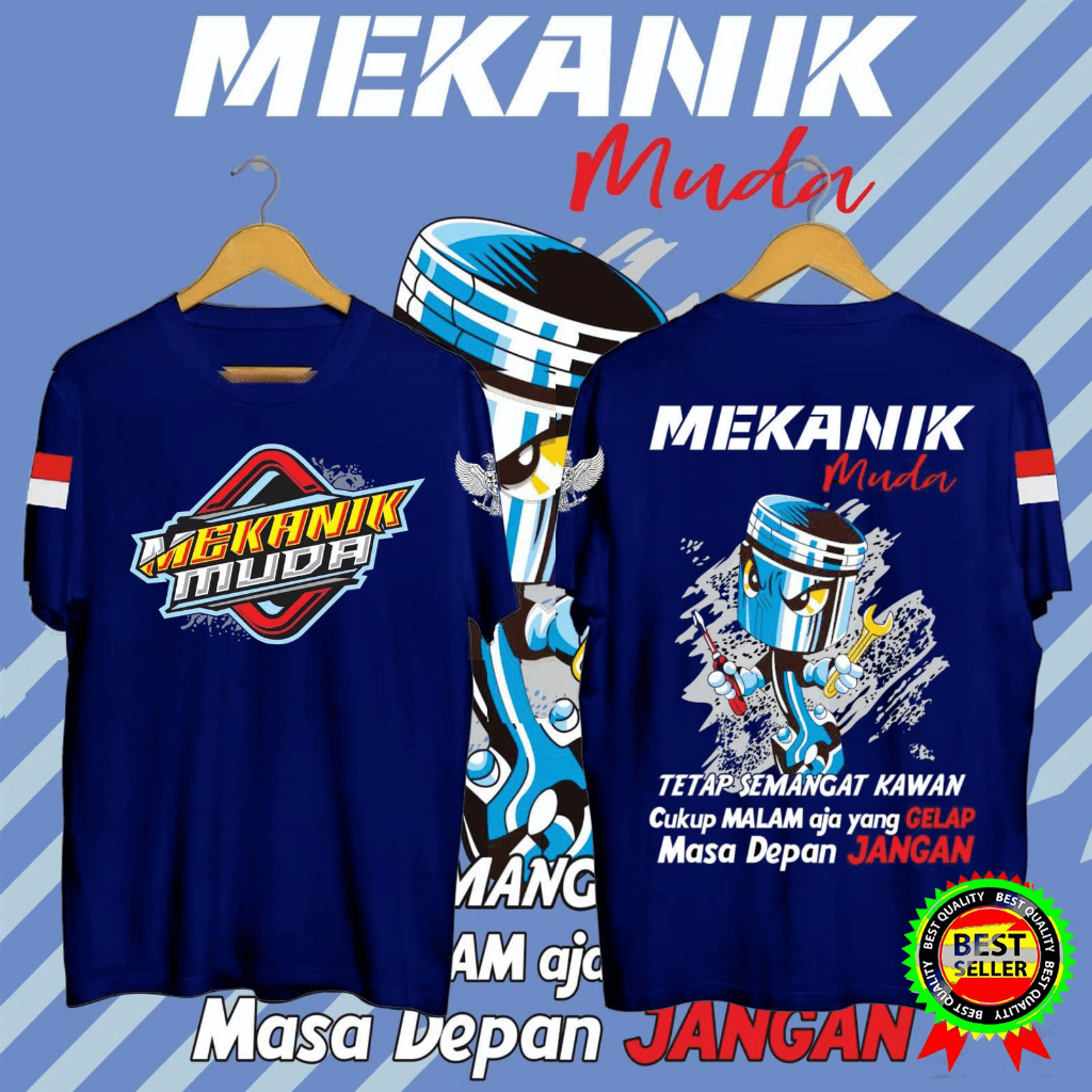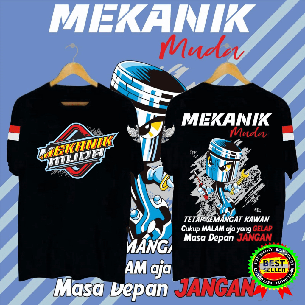 KAOS PRIA MEKANIK MUDA TETAP SEMANGAT KAWAN BLACK | SIMPLE, DINAMIS, DAN MEMBERIKAN KESAN KASUAL