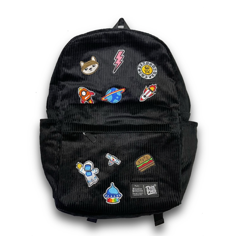 TAS PUNGGUNG RANSEL BACKPACK CORDUROY FULL BLACK PATCH THISPLAN