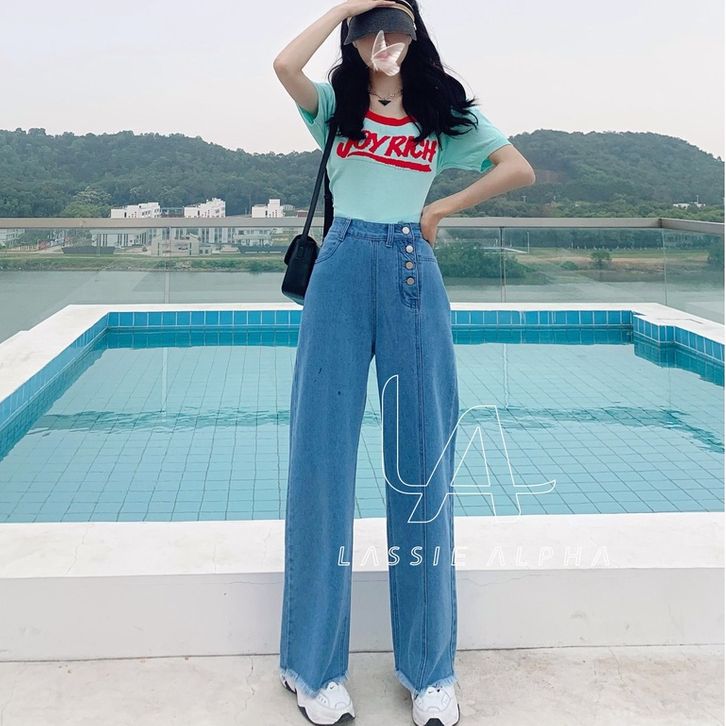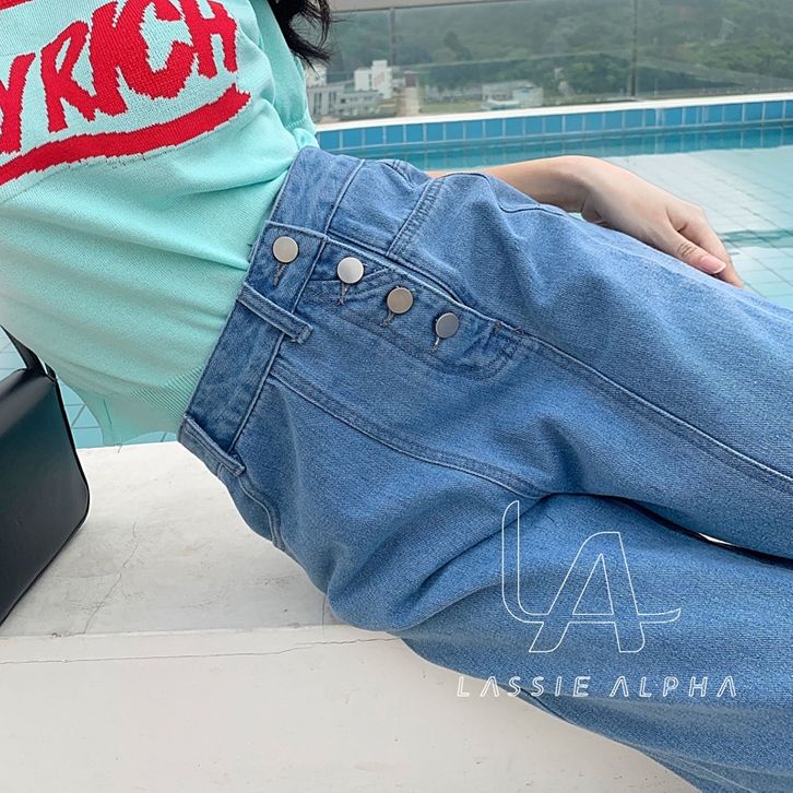 CELANA JEANS WANITA HIGHWAIST BIRU MUDA KANCING LOGAM DI SAMPING LASSIE ALPHA J28 ORIGINAL OFFICIAL STORE