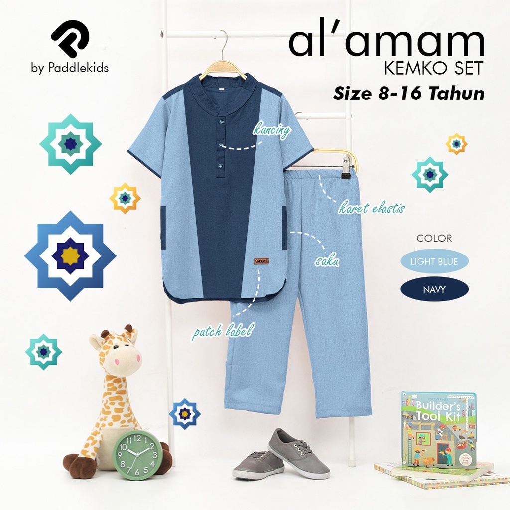 baju setelan Koko anak laki laki al'amam lengan pendek usia 8-16 tahun new