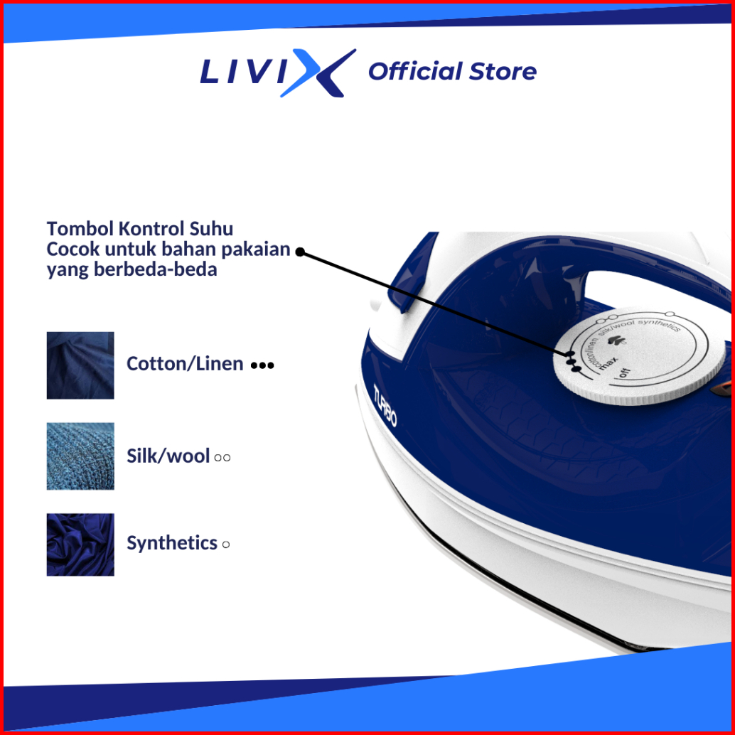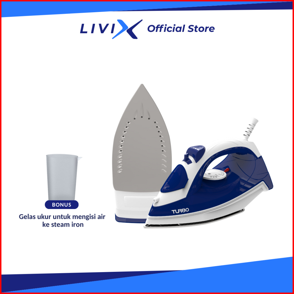 Turbo Setrika Uap Ehl3003 Anti Lengket Merah Biru