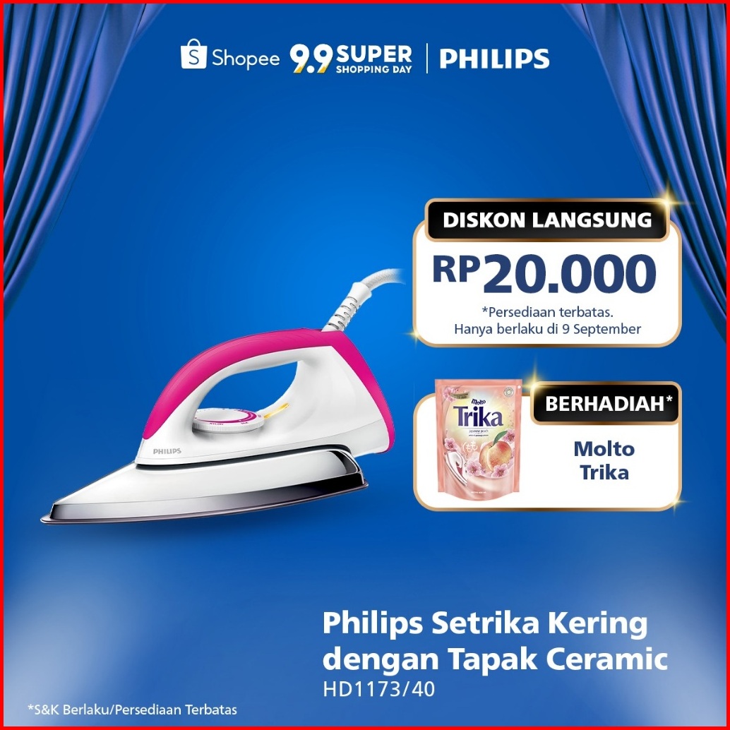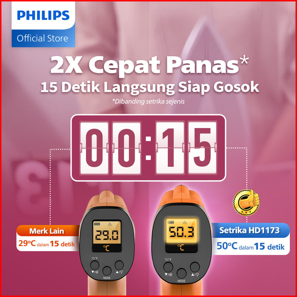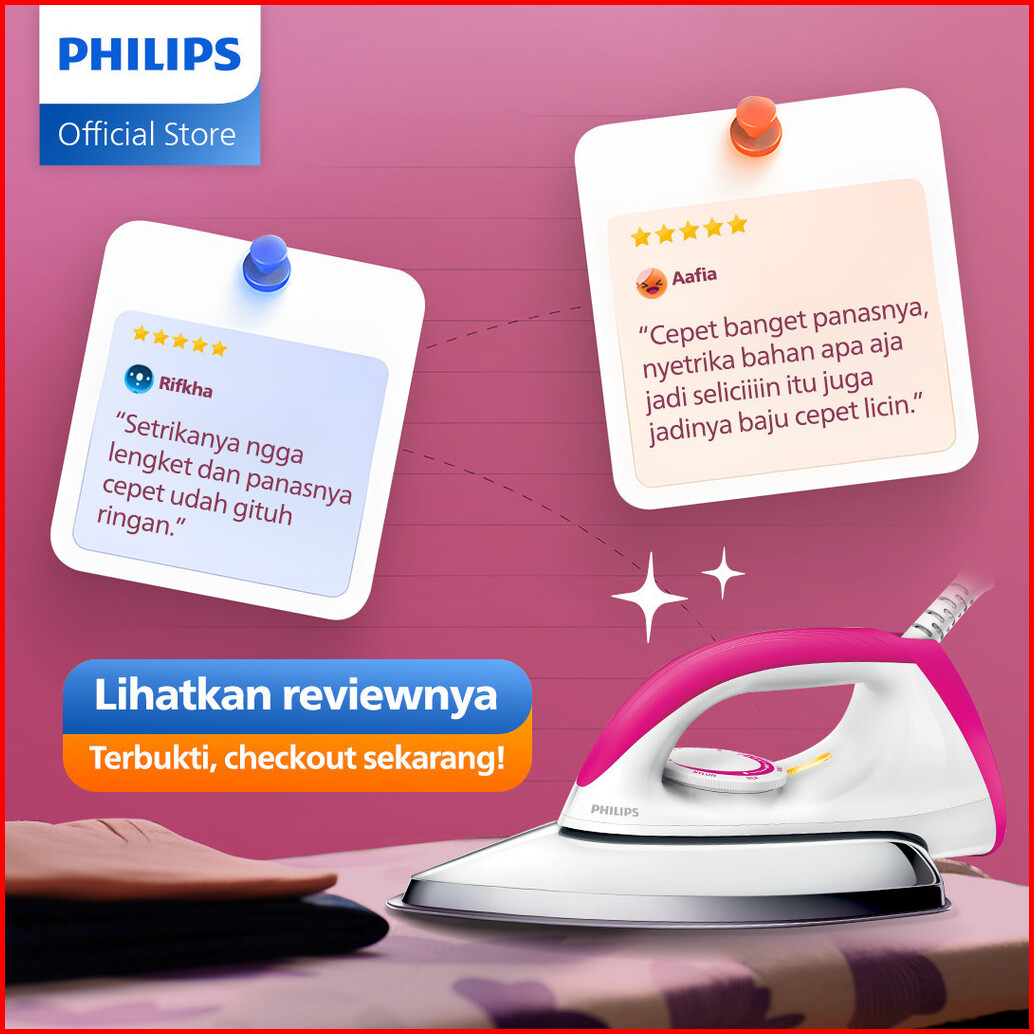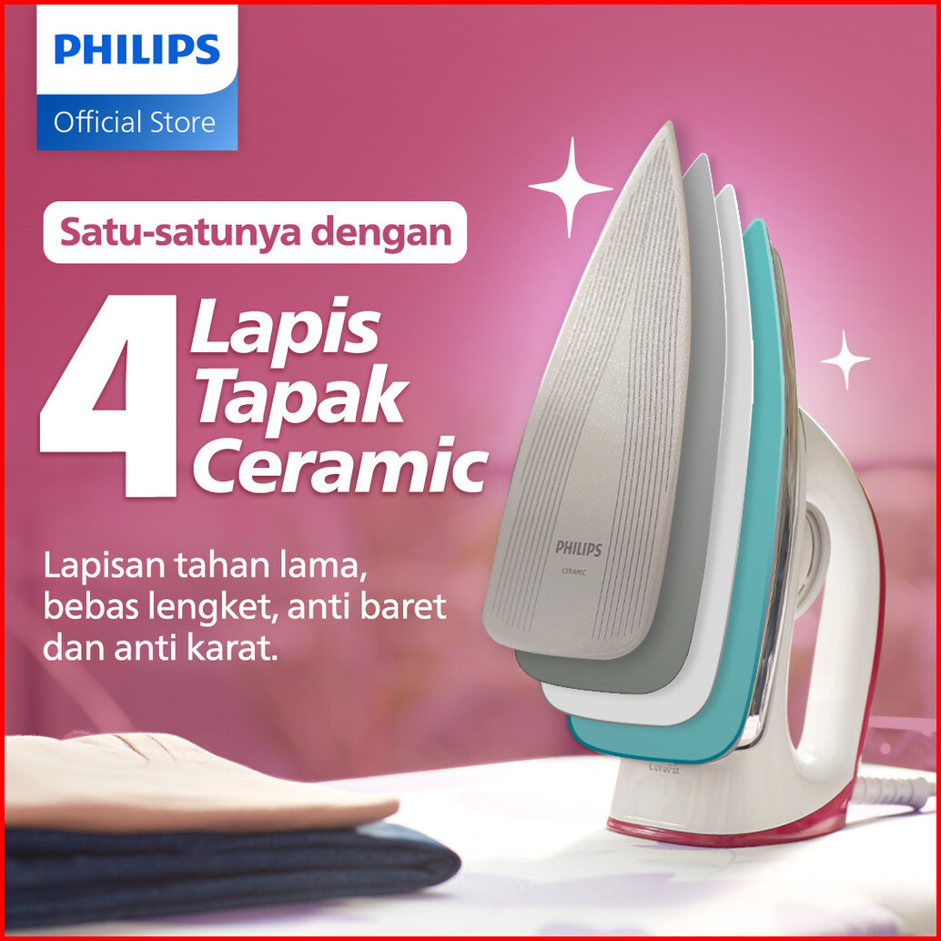 Philips Setrika Kering Hd1173 40 Pink Ceramic 4 Lapis Anti-lengket Seterika Philips Gosokan Baju