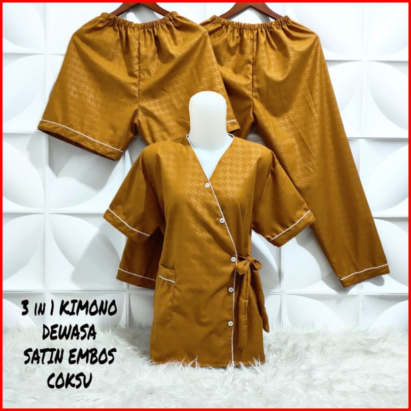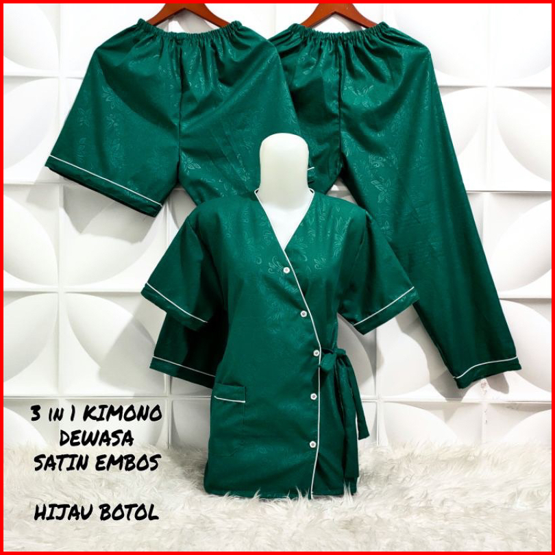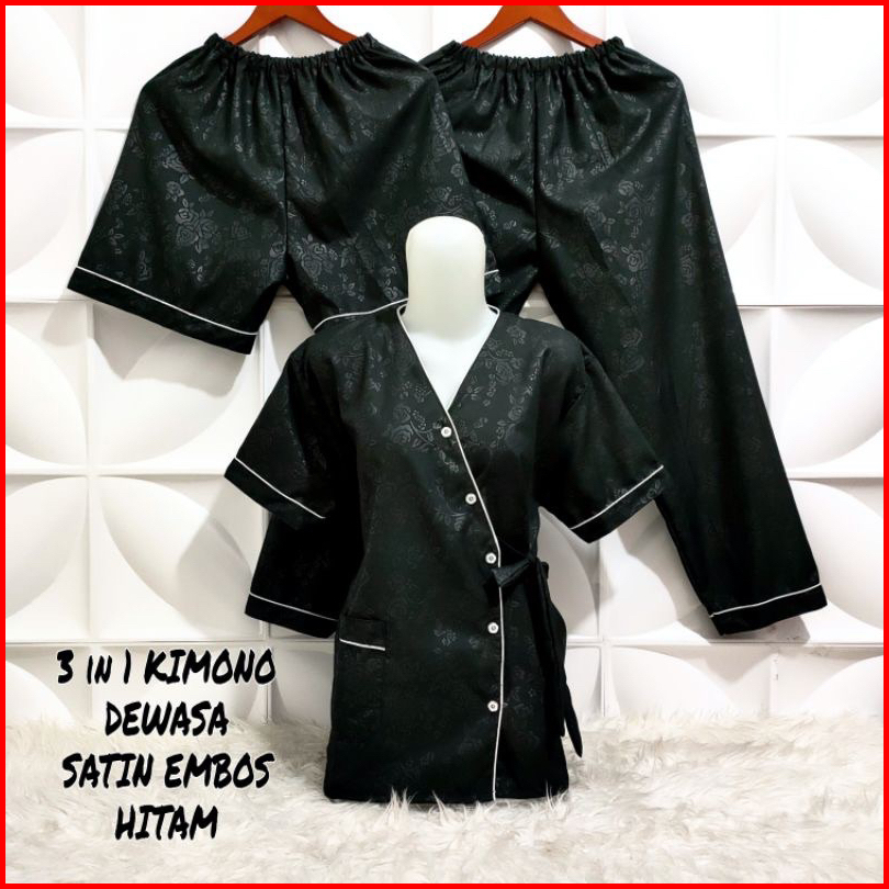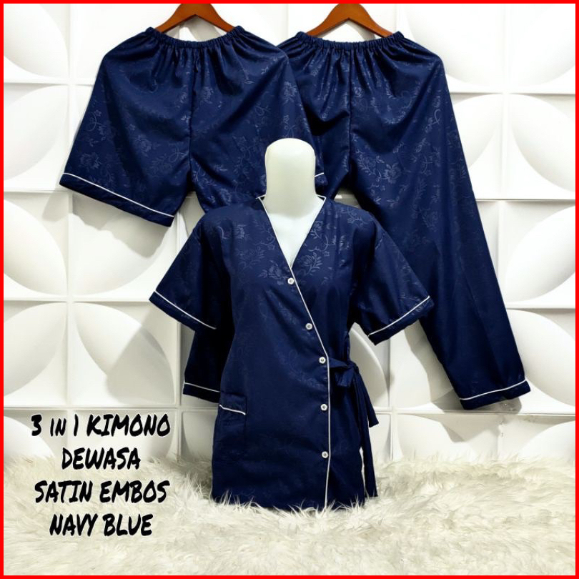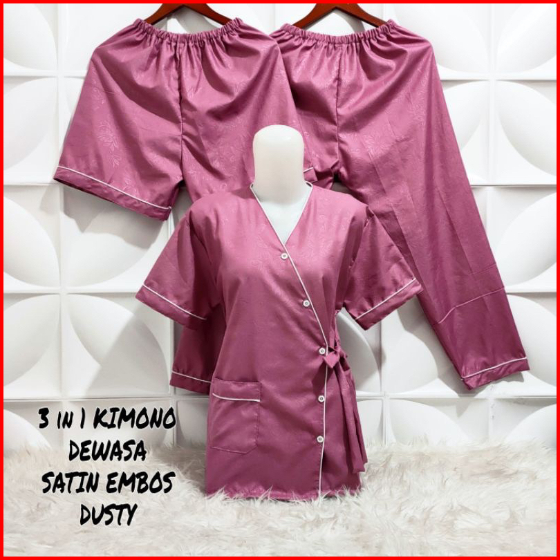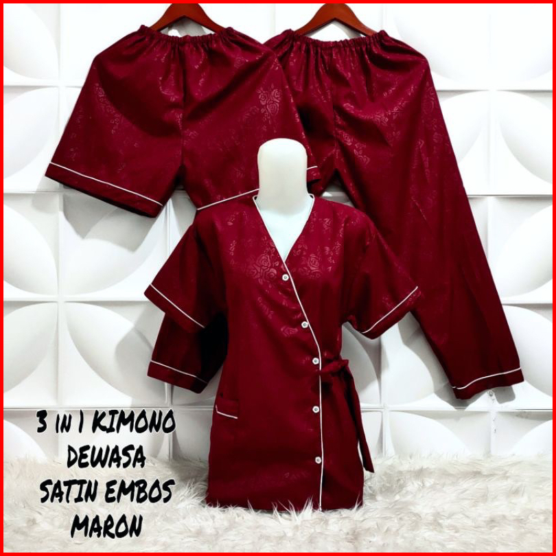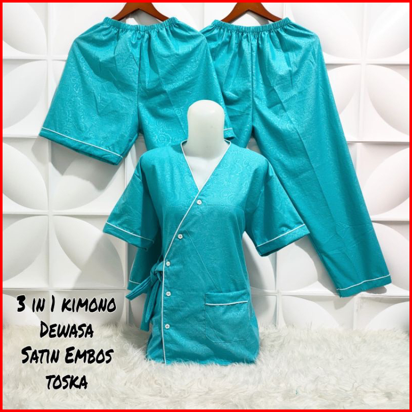 Vwcollection - Piyama Wanita Dewasa 3in1 Model Kimono Katun Emboss Size L Xl Xxl