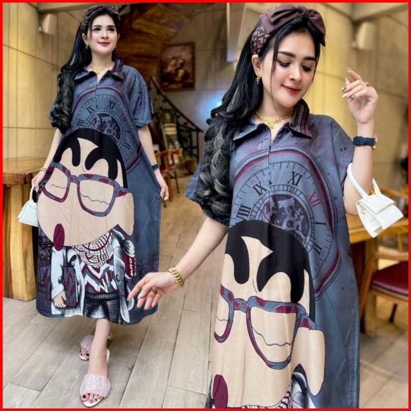 Dress Viral Kekinian Daster Kerah Fuji Resleting Depan Busui Bumil