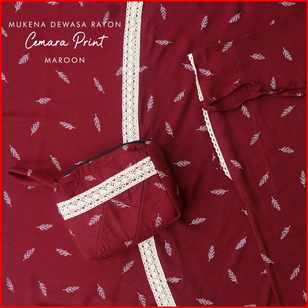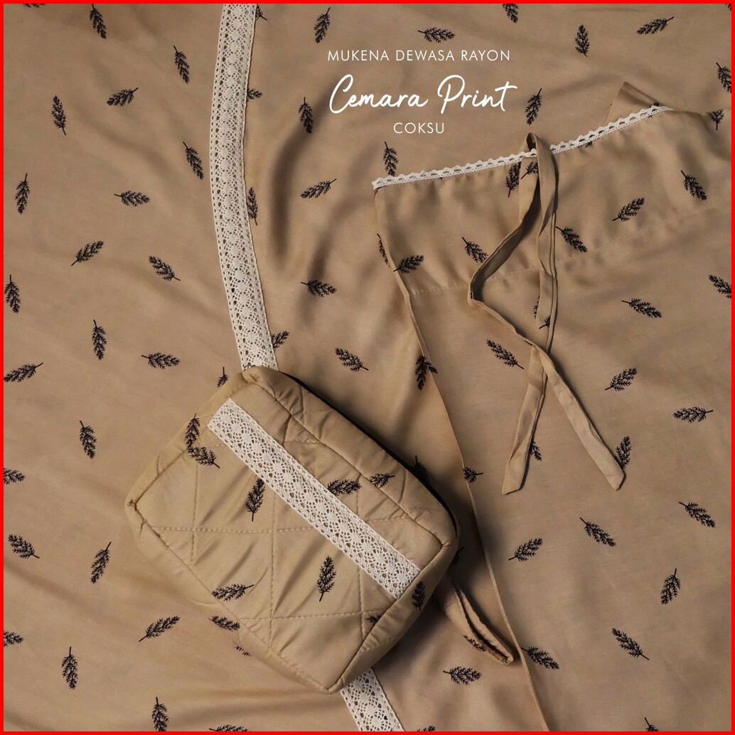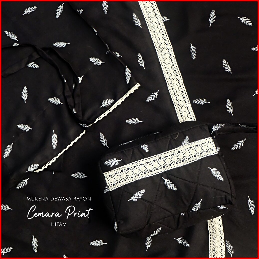Pusat Grosir Mukena Tasik - Mukena Dewasa Rayon Cemara Renda Print Tas Pesta