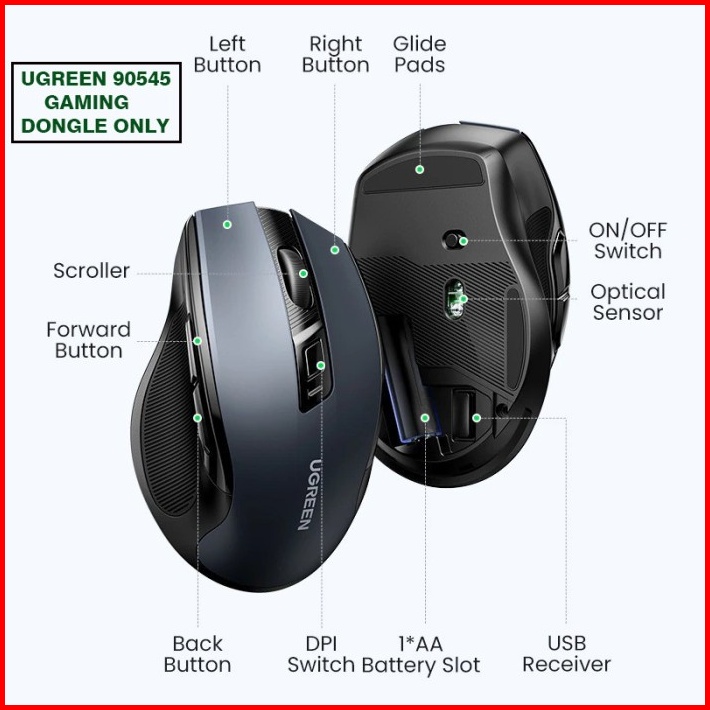 Ugreen Mouse Wireless Bluetooth Usb Mini Receiver 2.4ghz 4000dpi Silent Click Dual Mode - Wonderland Store Surabaya