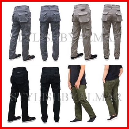 Celana Cargo Panjang Pria Cowok Hitam Abu Hijau Army Cream Berkualitas
