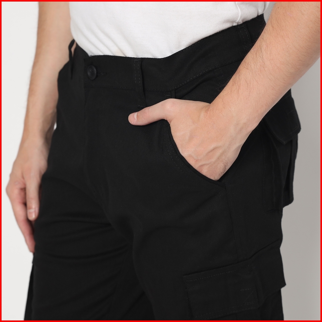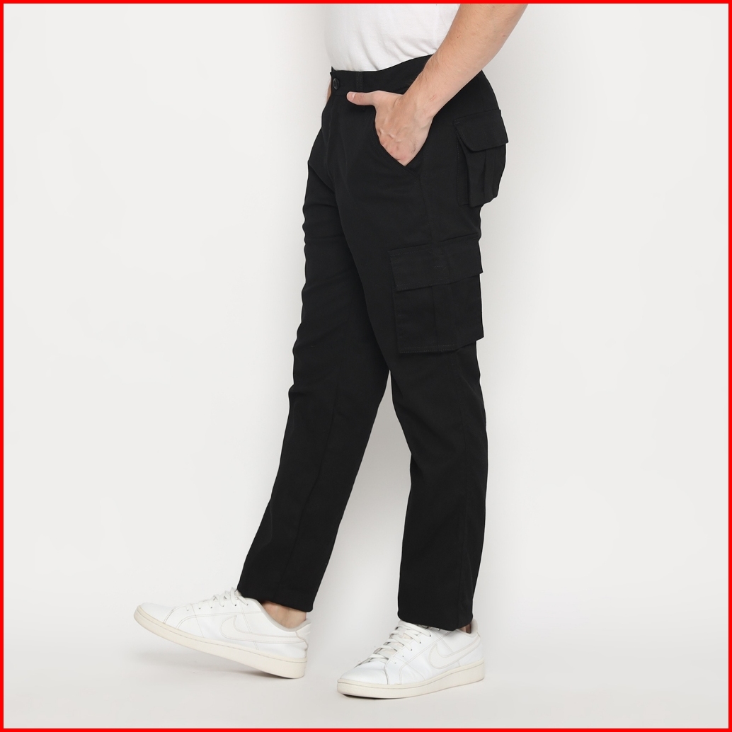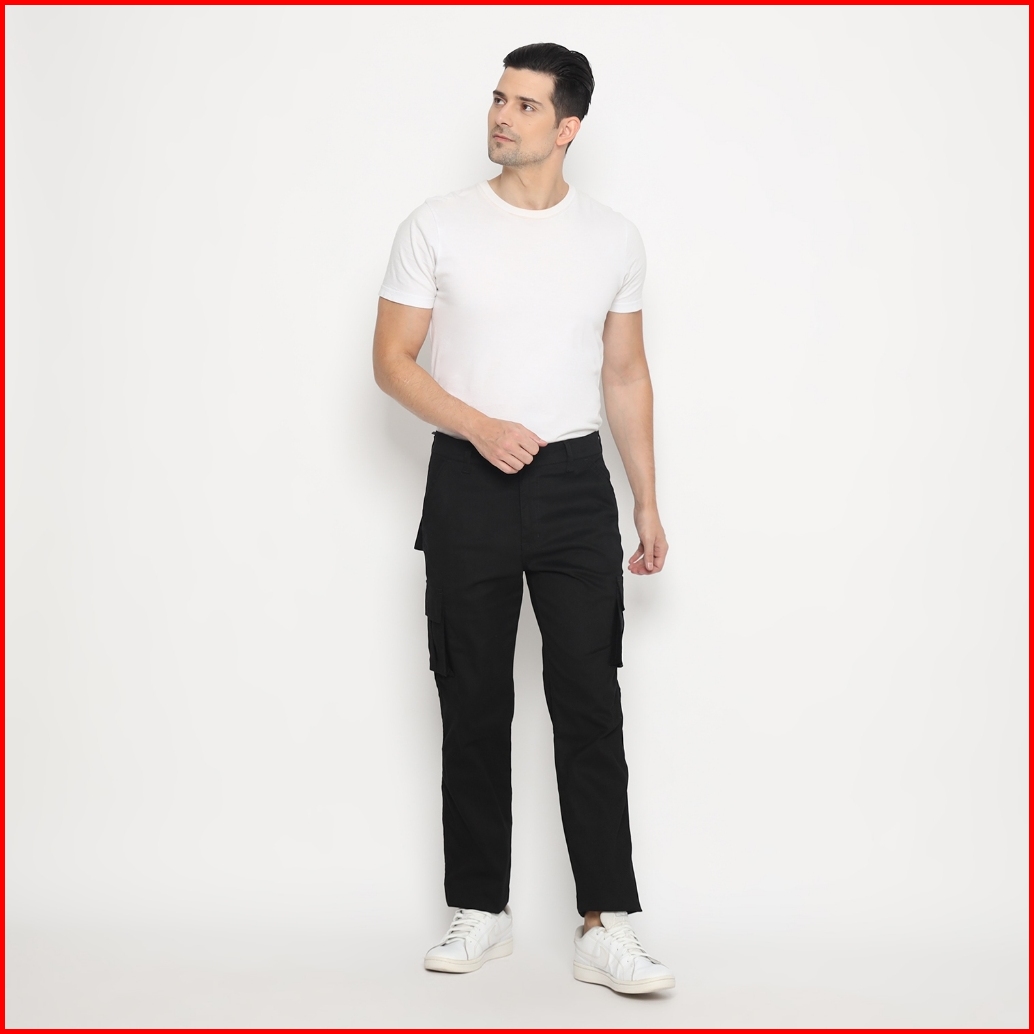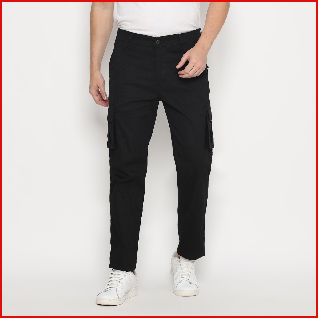 Fichino Cargo Pants Pria Celana Cargo Panjang Pria Denver Series Warna Hitam