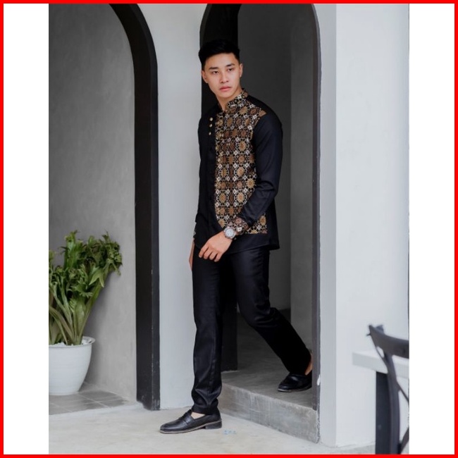 Kemeja Batik Pria Nuc.id Pangeran 01 Katun Toyobo Hitam