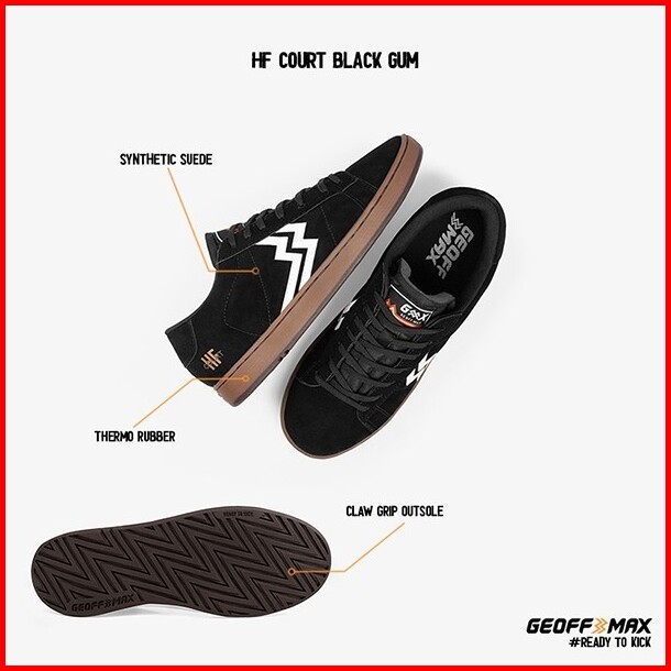 Geoff Max - Hf Court Black Gum Shoes Cupsole Sepatu Sneakers Sepatu Pria Wanita