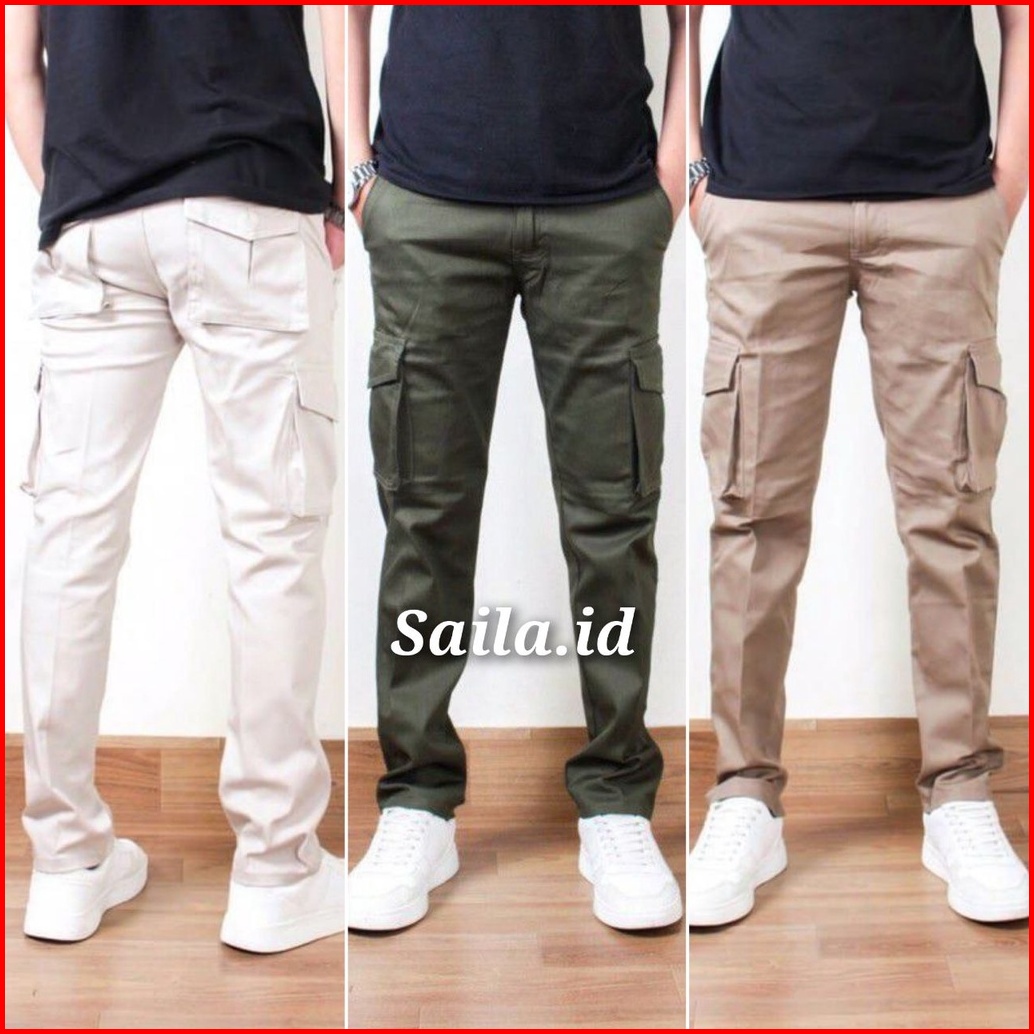 Termurah Celana Cargo Panjang Pria Cowok Army Hitam Mocca Grey Kream